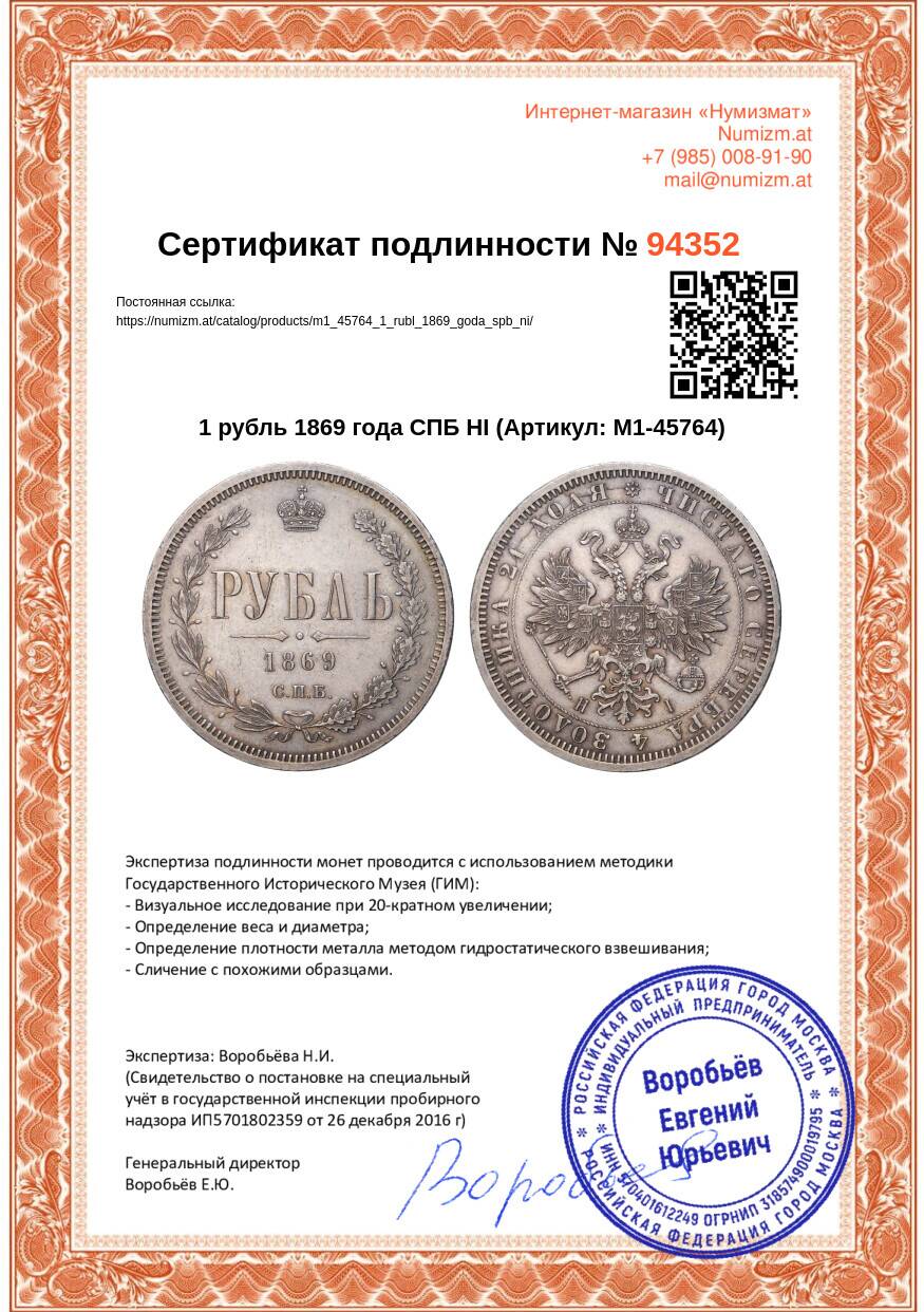 Купить 1 рубль 1869 года СПБ НI по привлекательной цене можно в нашем интернет-магазине — Вам достаточно оформить заказ на сайте. Все монеты, представленные в каталоге, находятся в наличии на нашем складе.