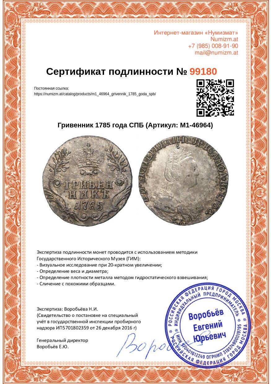 Купить Гривенник 1785 года СПБ по привлекательной цене можно в нашем интернет-магазине — Вам достаточно оформить заказ на сайте. Все монеты, представленные в каталоге, находятся в наличии на нашем складе.