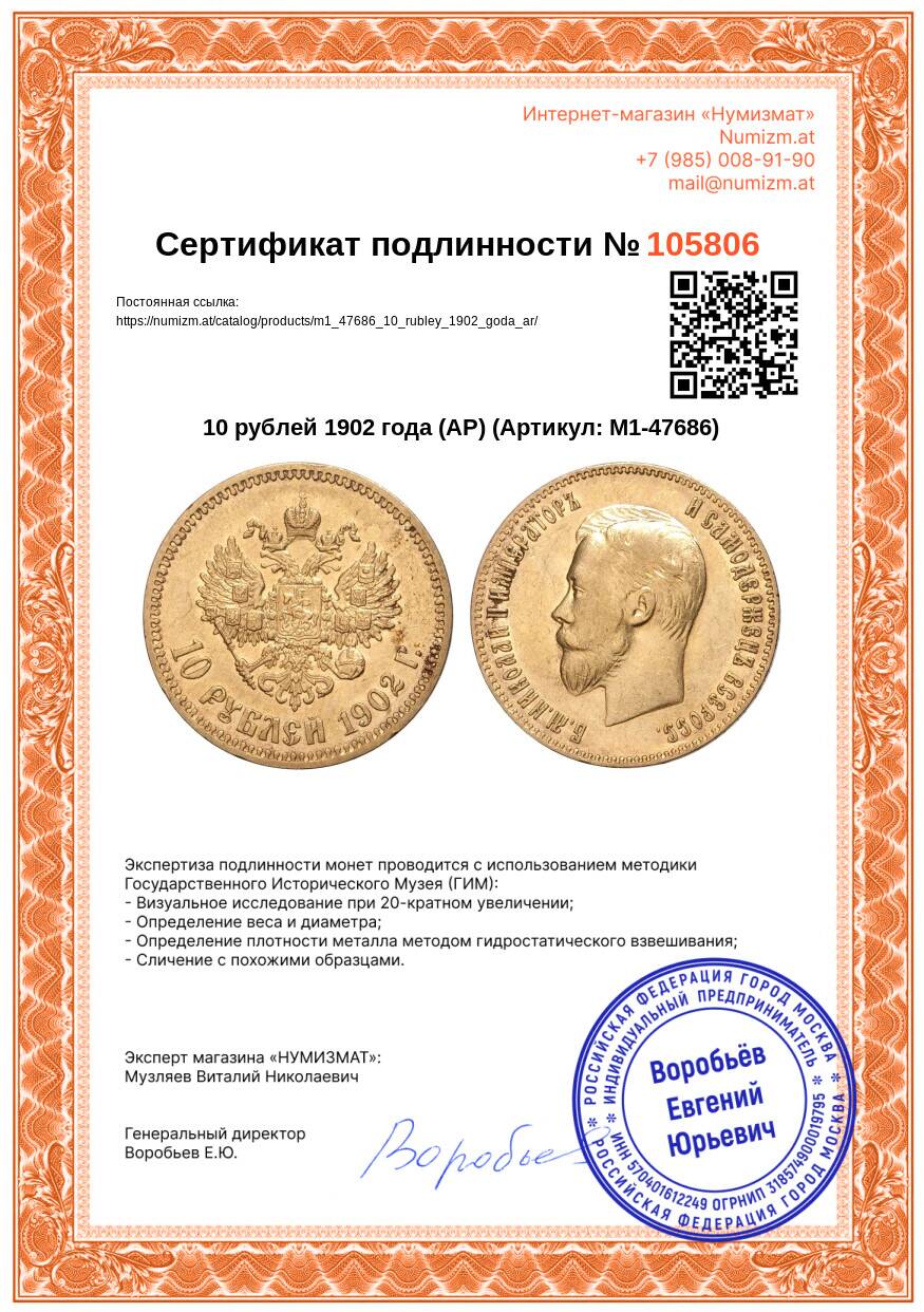 Купить 10 рублей 1902 года (АР) по привлекательной цене можно в нашем интернет-магазине — Вам достаточно оформить заказ на сайте. Все монеты, представленные в каталоге, находятся в наличии на нашем складе.