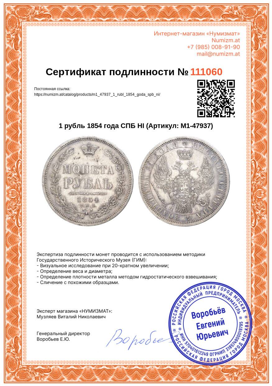 Купить 1 рубль 1854 года СПБ НI по привлекательной цене можно в нашем интернет-магазине — Вам достаточно оформить заказ на сайте. Все монеты, представленные в каталоге, находятся в наличии на нашем складе.