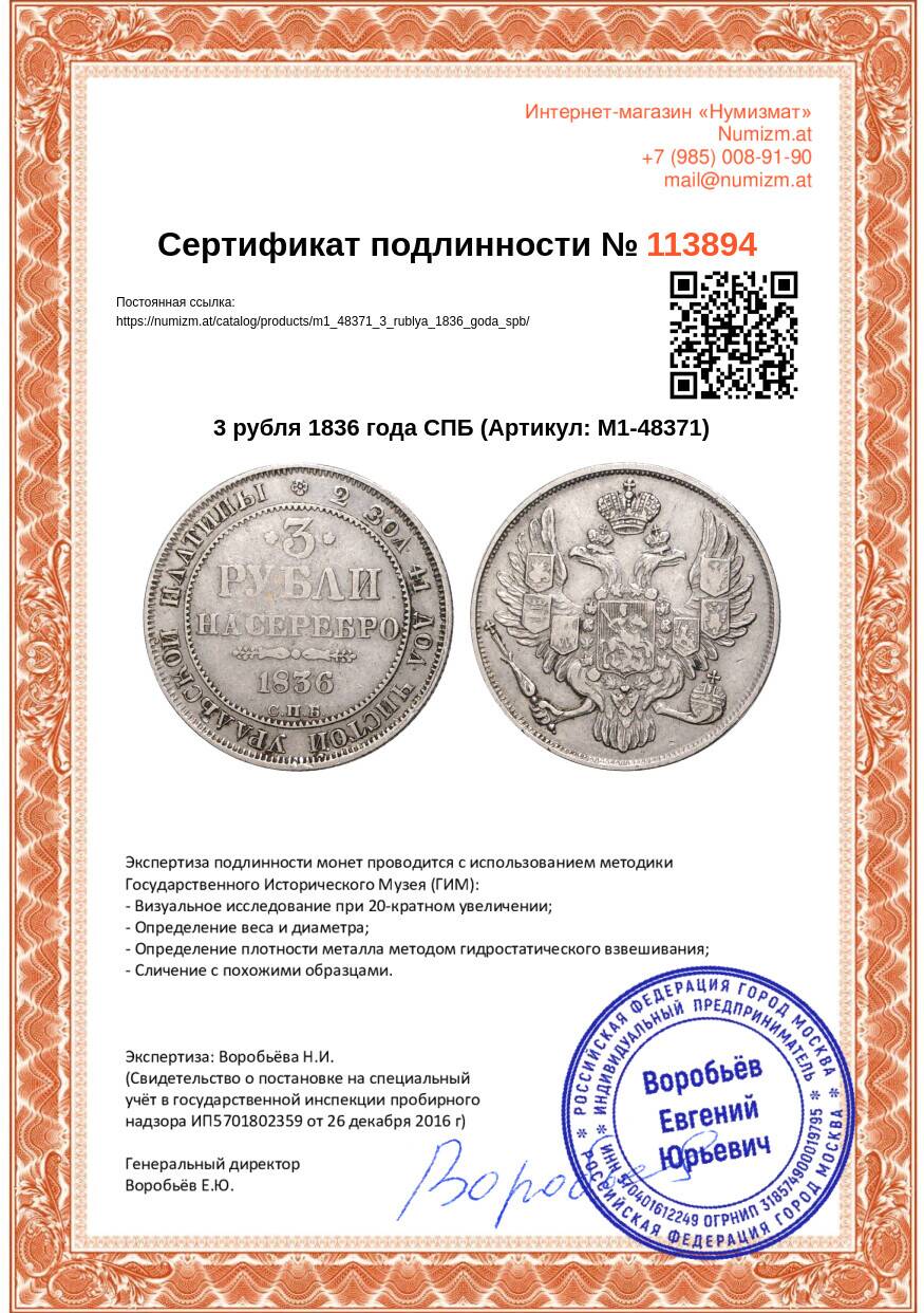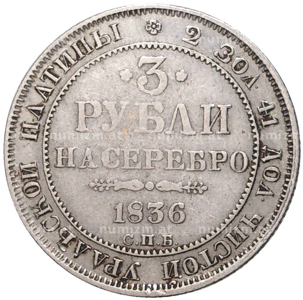 Купить 3 рубля 1836 года СПБ по привлекательной цене можно в нашем интернет-магазине — Вам достаточно оформить заказ на сайте. Все монеты, представленные в каталоге, находятся в наличии на нашем складе.