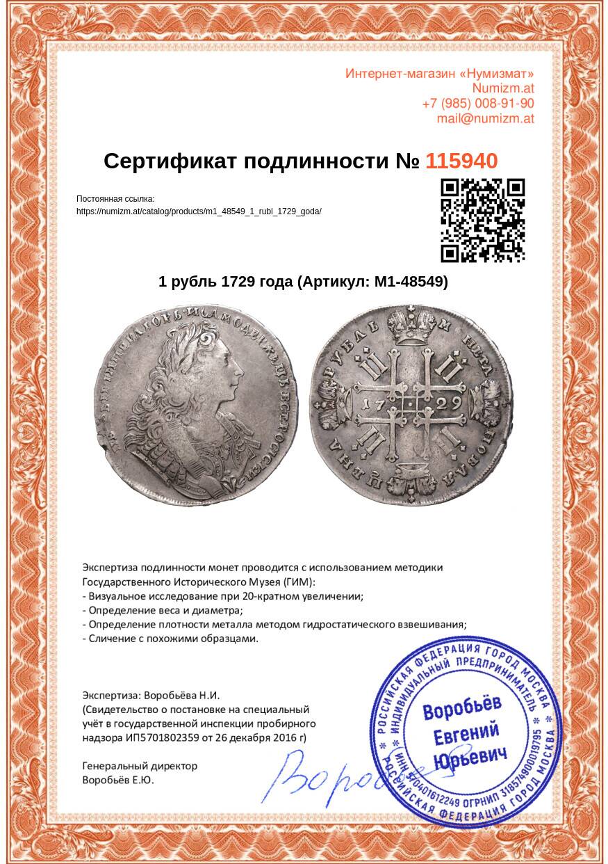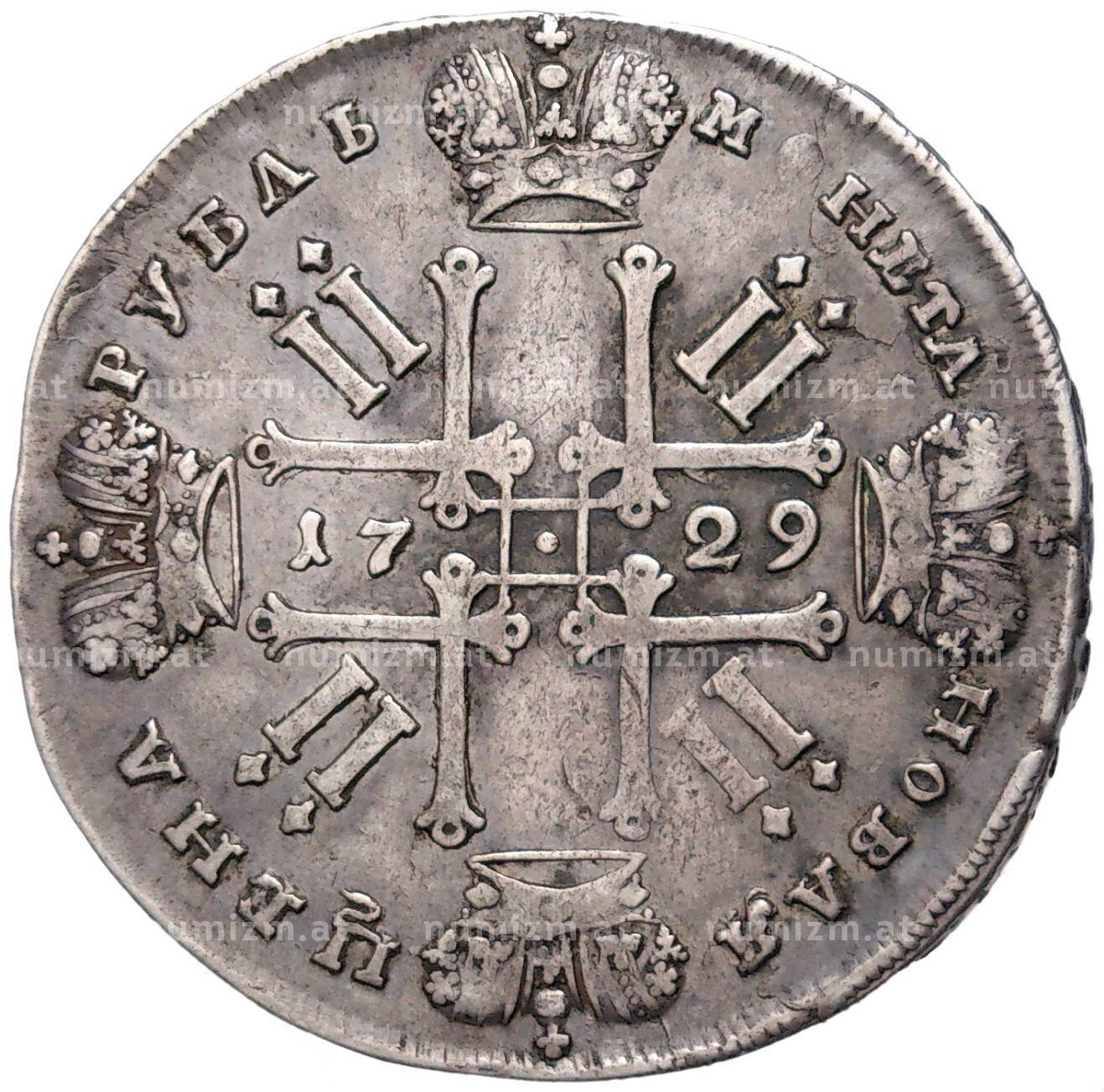 Купить 1 рубль 1729 года по привлекательной цене можно в нашем интернет-магазине — Вам достаточно оформить заказ на сайте. Все монеты, представленные в каталоге, находятся в наличии на нашем складе.