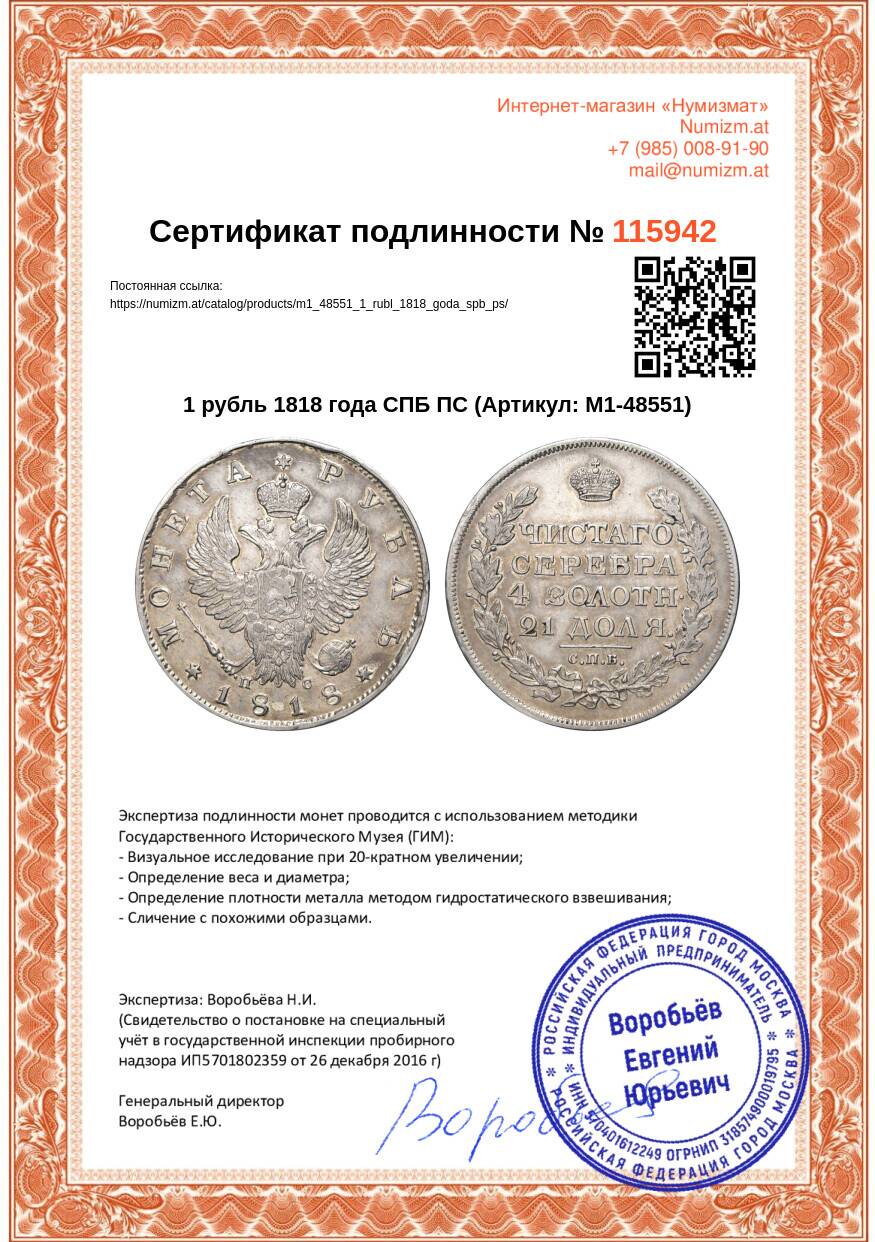 Купить 1 рубль 1818 года СПБ ПС по привлекательной цене можно в нашем интернет-магазине — Вам достаточно оформить заказ на сайте. Все монеты, представленные в каталоге, находятся в наличии на нашем складе.