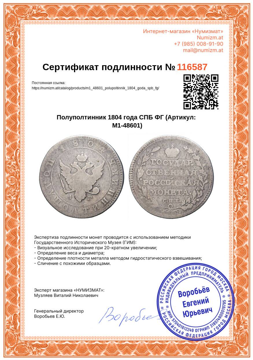 Купить Полуполтинник 1804 года СПБ ФГ по привлекательной цене можно в нашем интернет-магазине — Вам достаточно оформить заказ на сайте. Все монеты, представленные в каталоге, находятся в наличии на нашем складе.
