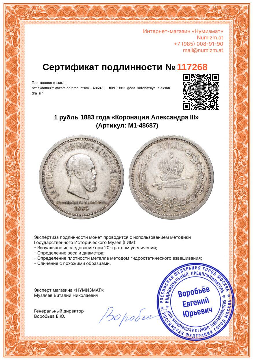 Купить 1 рубль 1883 года «Коронация Александра III» по привлекательной цене можно в нашем интернет-магазине — Вам достаточно оформить заказ на сайте. Все монеты, представленные в каталоге, находятся в наличии на нашем складе.