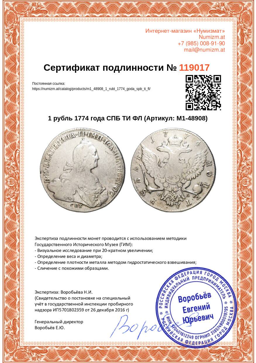 Купить 1 рубль 1774 года СПБ ТИ ФЛ по привлекательной цене можно в нашем интернет-магазине — Вам достаточно оформить заказ на сайте. Все монеты, представленные в каталоге, находятся в наличии на нашем складе.