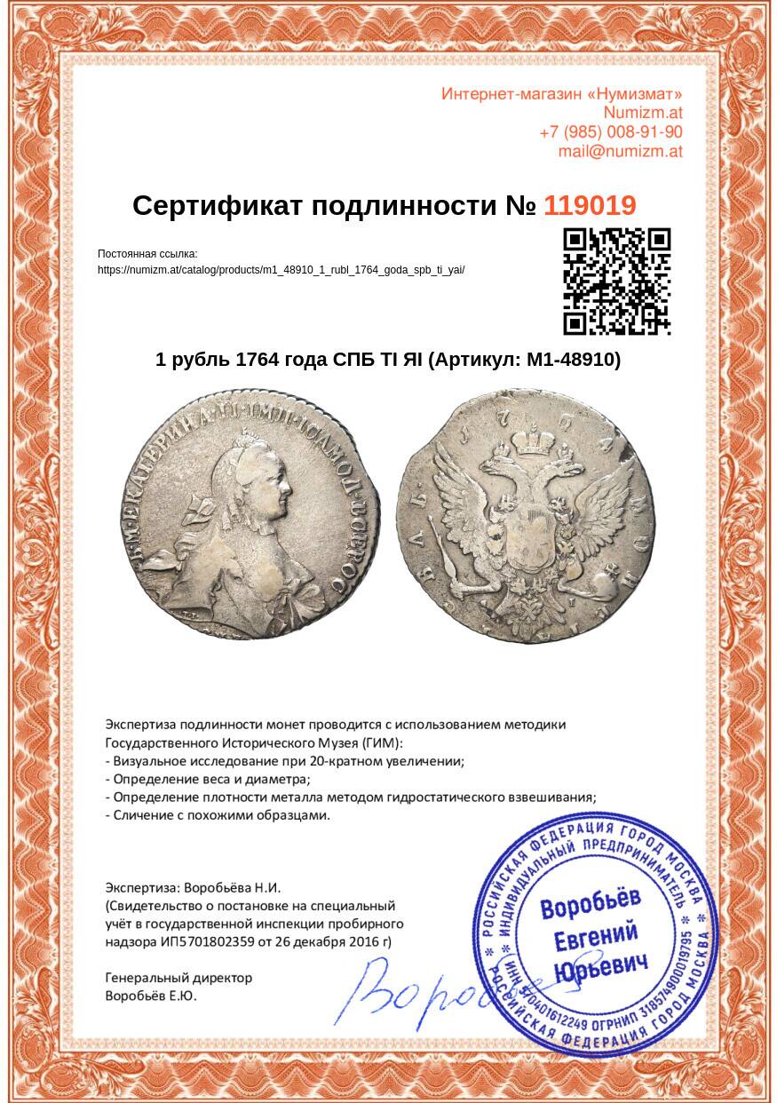 Купить 1 рубль 1764 года СПБ ТI ЯI по привлекательной цене можно в нашем интернет-магазине — Вам достаточно оформить заказ на сайте. Все монеты, представленные в каталоге, находятся в наличии на нашем складе.