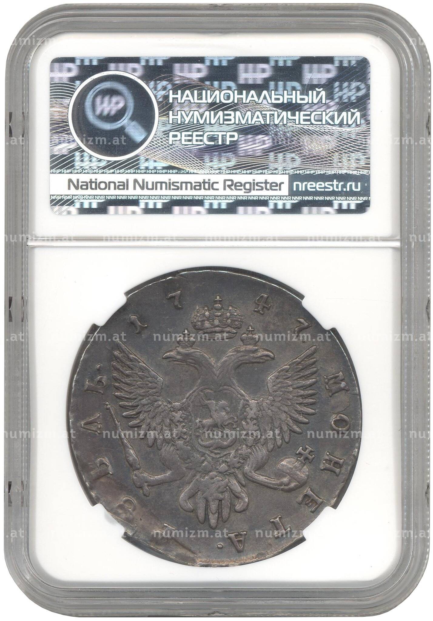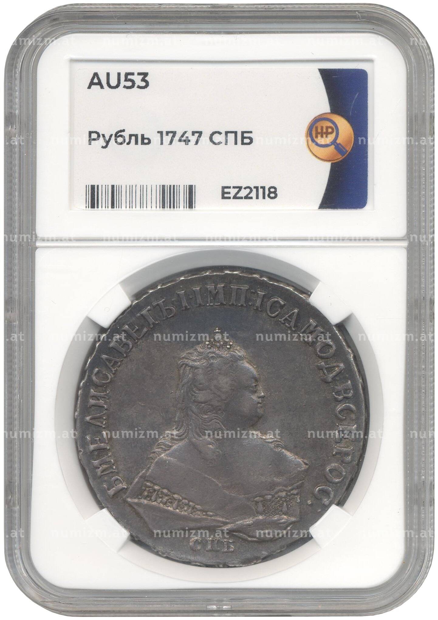 Купить 1 рубль 1747 года СПБ — в слабе ННР (AU53) по привлекательной цене можно в нашем интернет-магазине — Вам достаточно оформить заказ на сайте. Все монеты, представленные в каталоге, находятся в наличии на нашем складе.