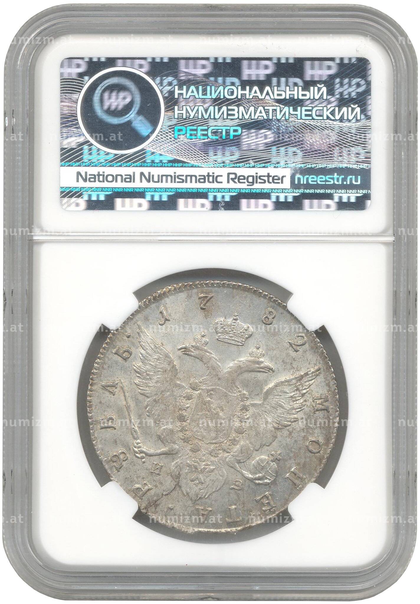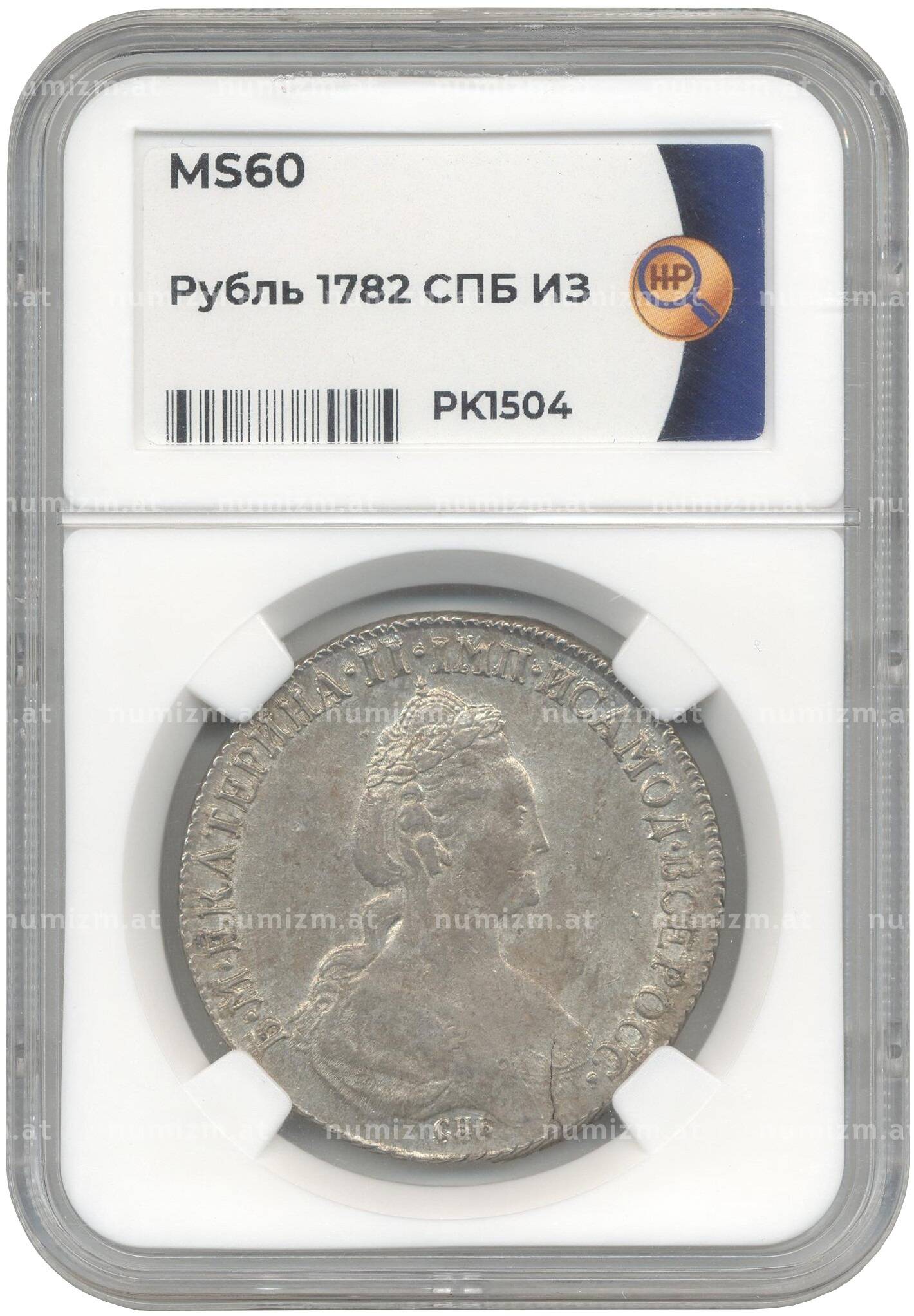 Купить 1 рубль 1782 года СПБ ИЗ — в слабе ННР (MS60) по привлекательной цене можно в нашем интернет-магазине — Вам достаточно оформить заказ на сайте. Все монеты, представленные в каталоге, находятся в наличии на нашем складе.
