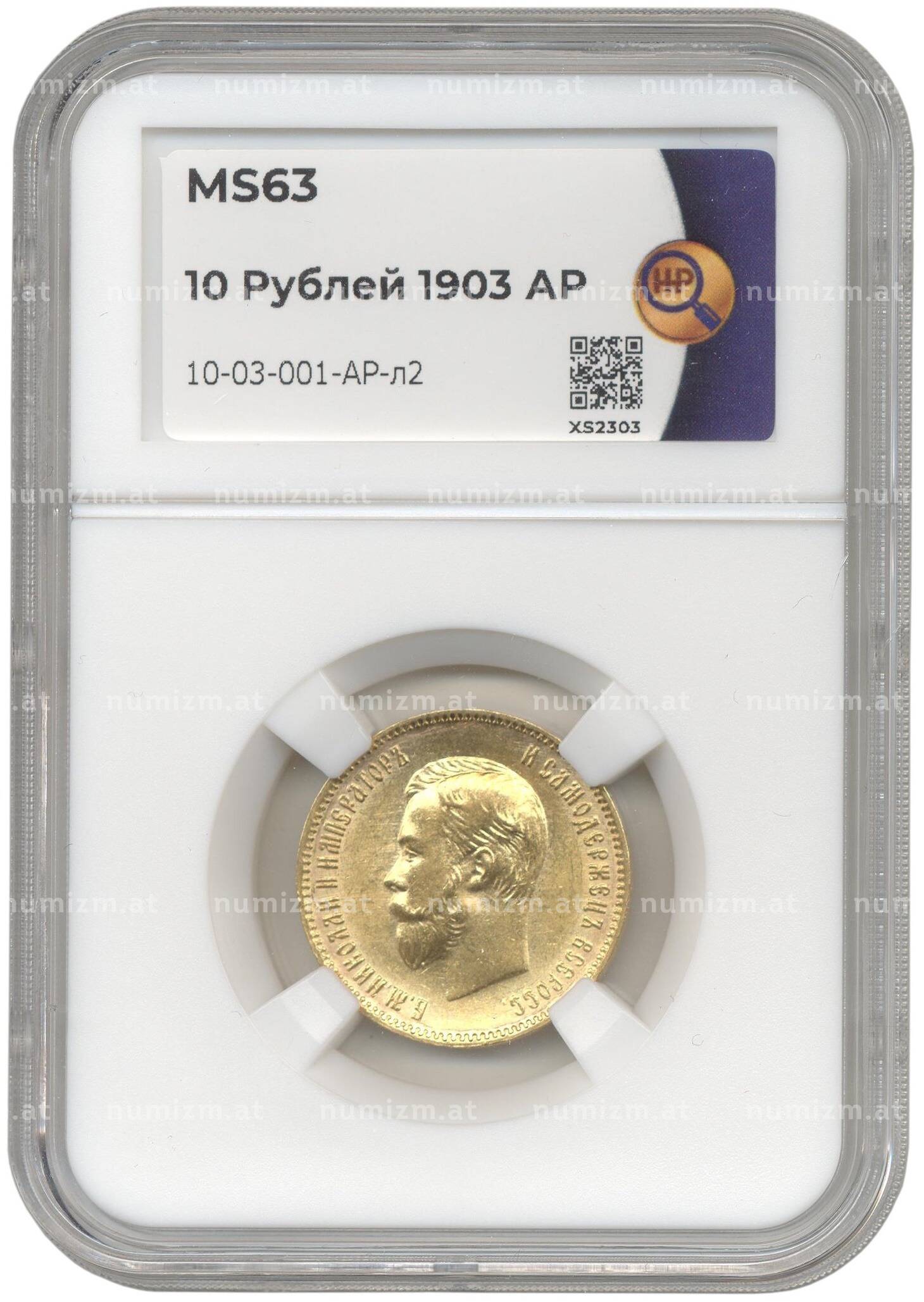 Купить 10 рублей 1903 года (АР) — в слабе ННР (MS63) по привлекательной цене можно в нашем интернет-магазине — Вам достаточно оформить заказ на сайте. Все монеты, представленные в каталоге, находятся в наличии на нашем складе.