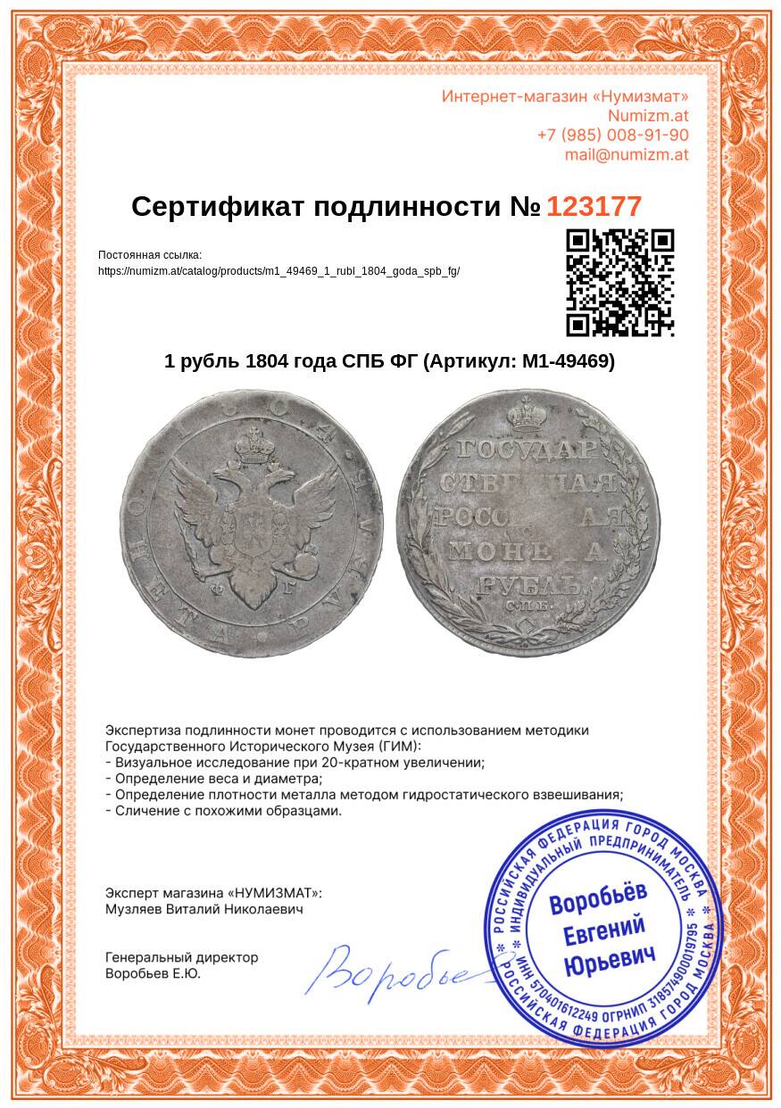 20.01.2025Интернет магазин «Нумизмат» предлагает приобрести 1 рубль 1804 года СПБ ФГ.