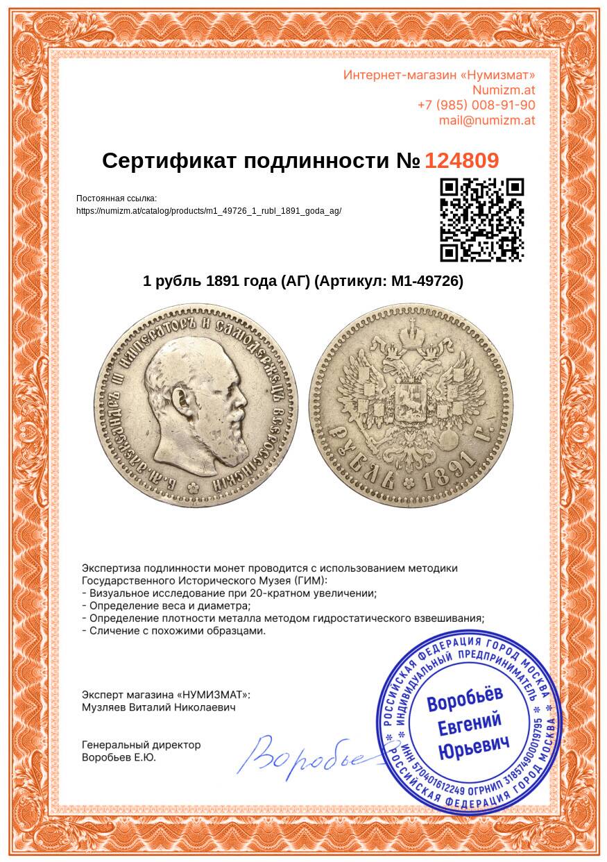 Купить 1 рубль 1891 года (АГ) по привлекательной цене можно в нашем интернет-магазине — Вам достаточно оформить заказ на сайте. Все монеты, представленные в каталоге, находятся в наличии на нашем складе.