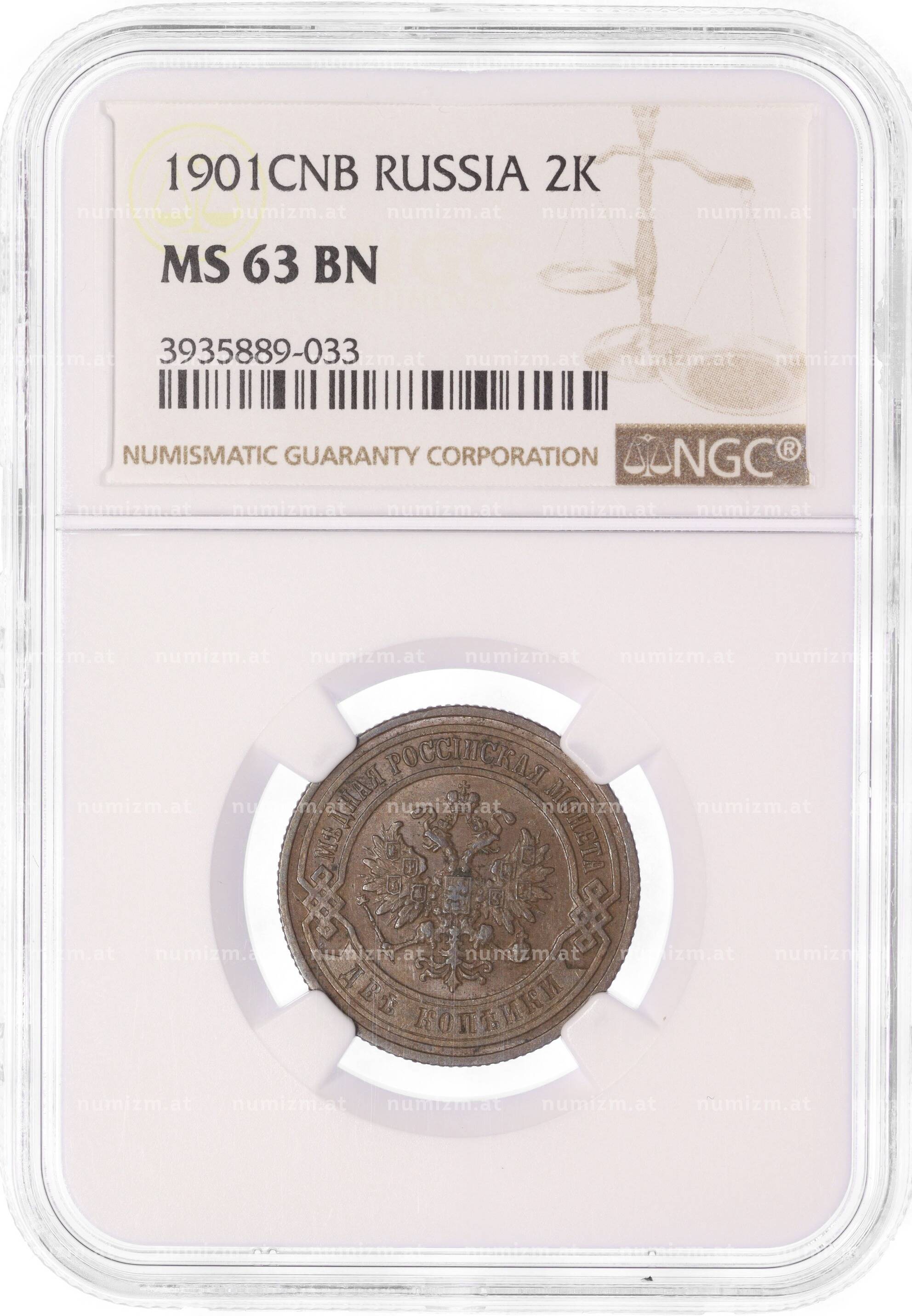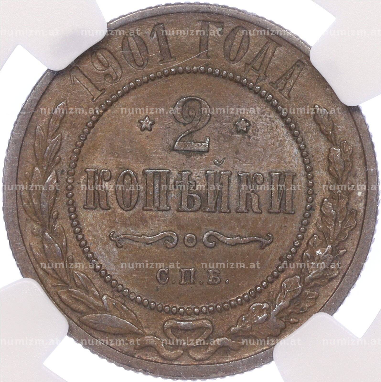 Купить 2 копейки 1901 года СПБ — в слабе NGC (MS63BN) по привлекательной цене можно в нашем интернет-магазине — Вам достаточно оформить заказ на сайте. Все монеты, представленные в каталоге, находятся в наличии на нашем складе.
