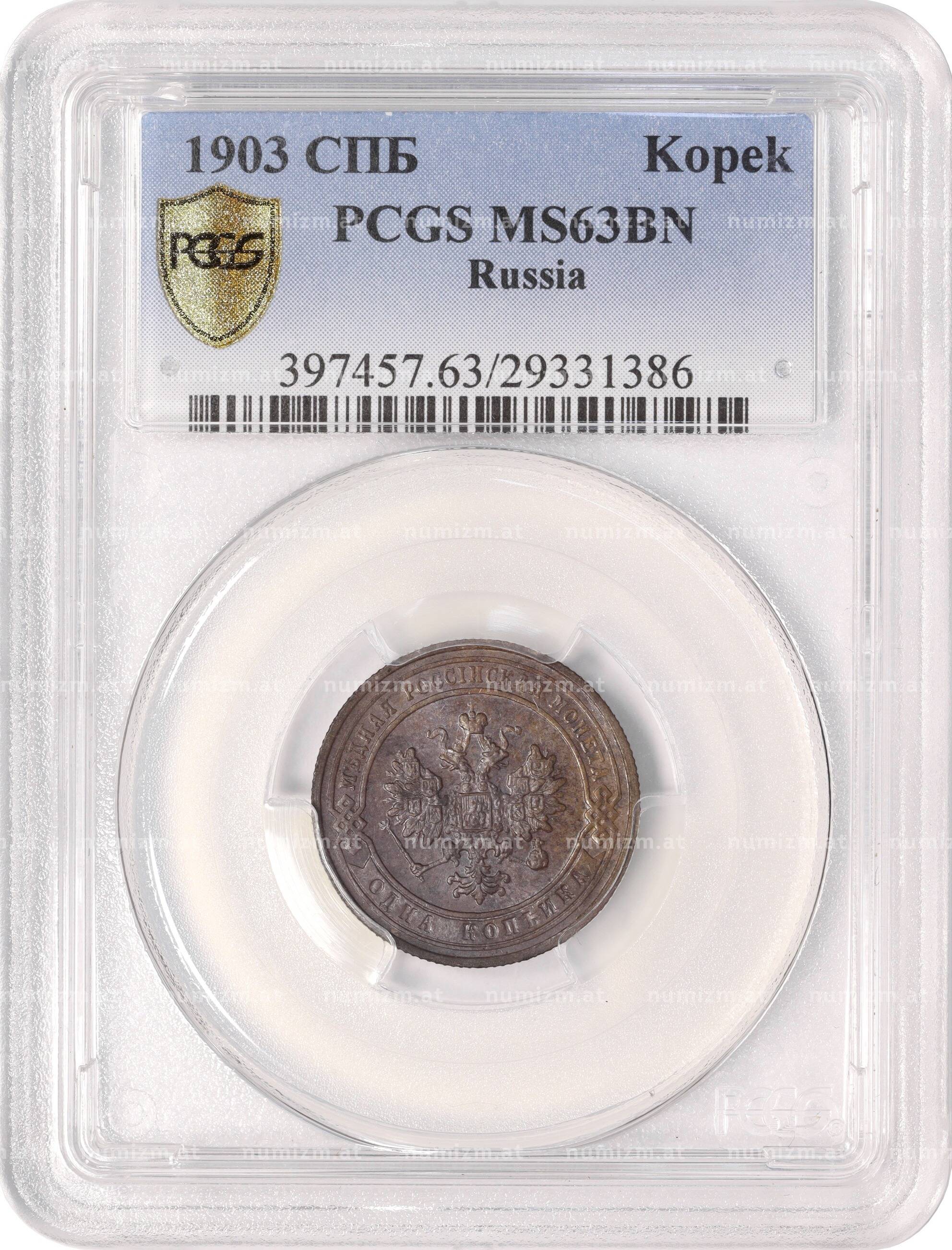 Купить 1 копейка 1903 года СПБ — в слабе PCGS (MS63BN) по привлекательной цене можно в нашем интернет-магазине — Вам достаточно оформить заказ на сайте. Все монеты, представленные в каталоге, находятся в наличии на нашем складе.