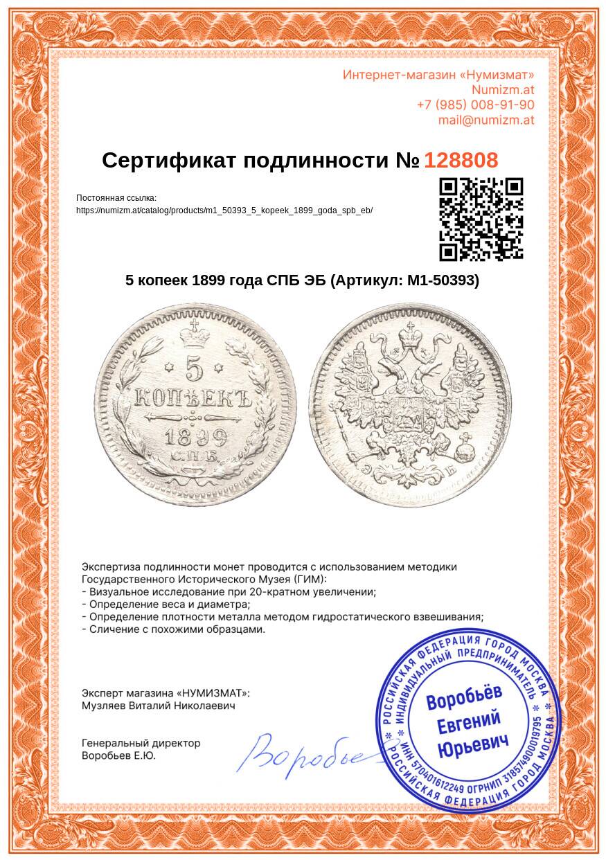 Купить 5 копеек 1899 года СПБ ЭБ по привлекательной цене можно в нашем интернет-магазине — Вам достаточно оформить заказ на сайте. Все монеты, представленные в каталоге, находятся в наличии на нашем складе.