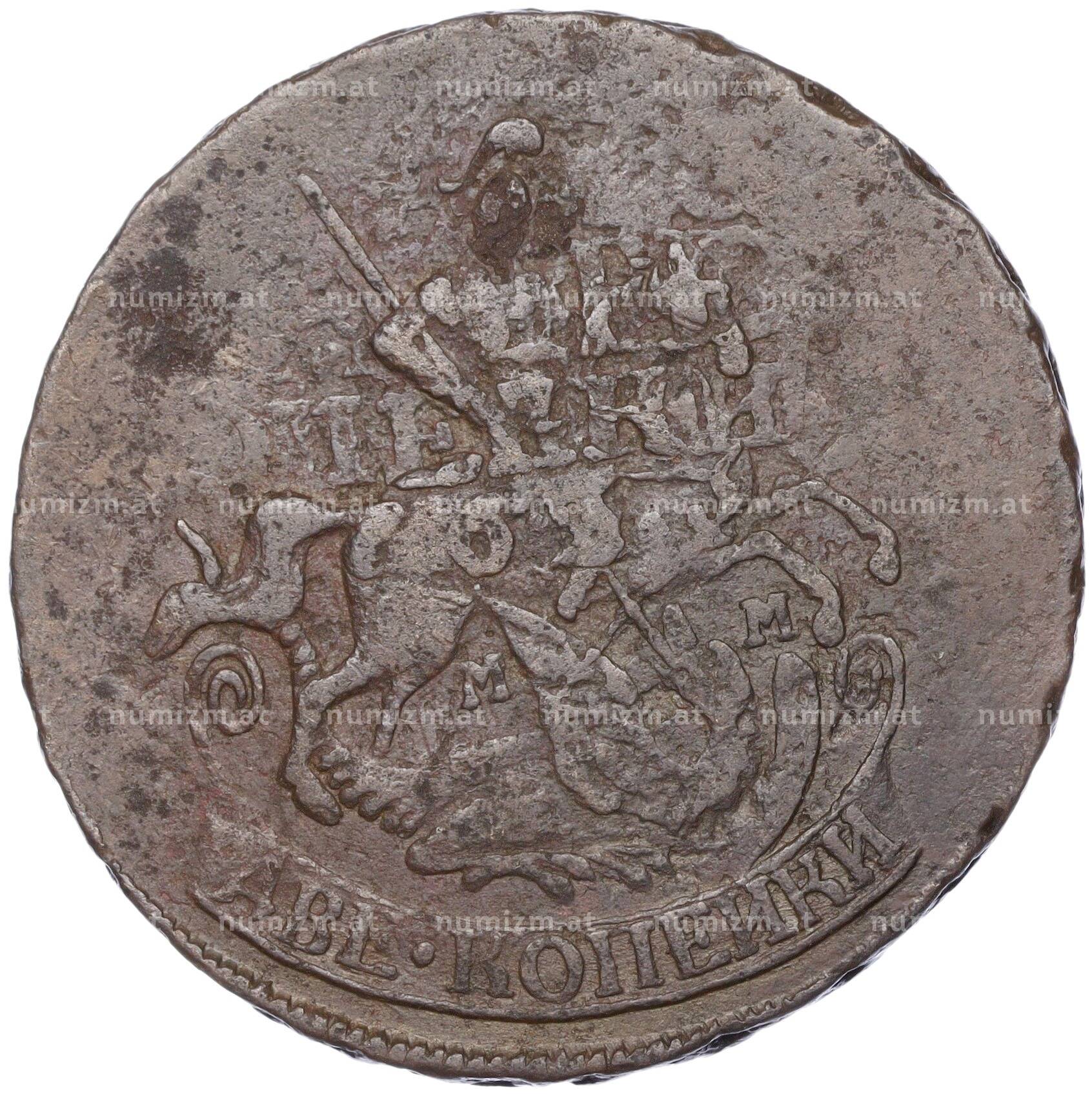 20.01.2025Интернет магазин «Нумизмат» предлагает приобрести 2 копейки 1765 года ММ.