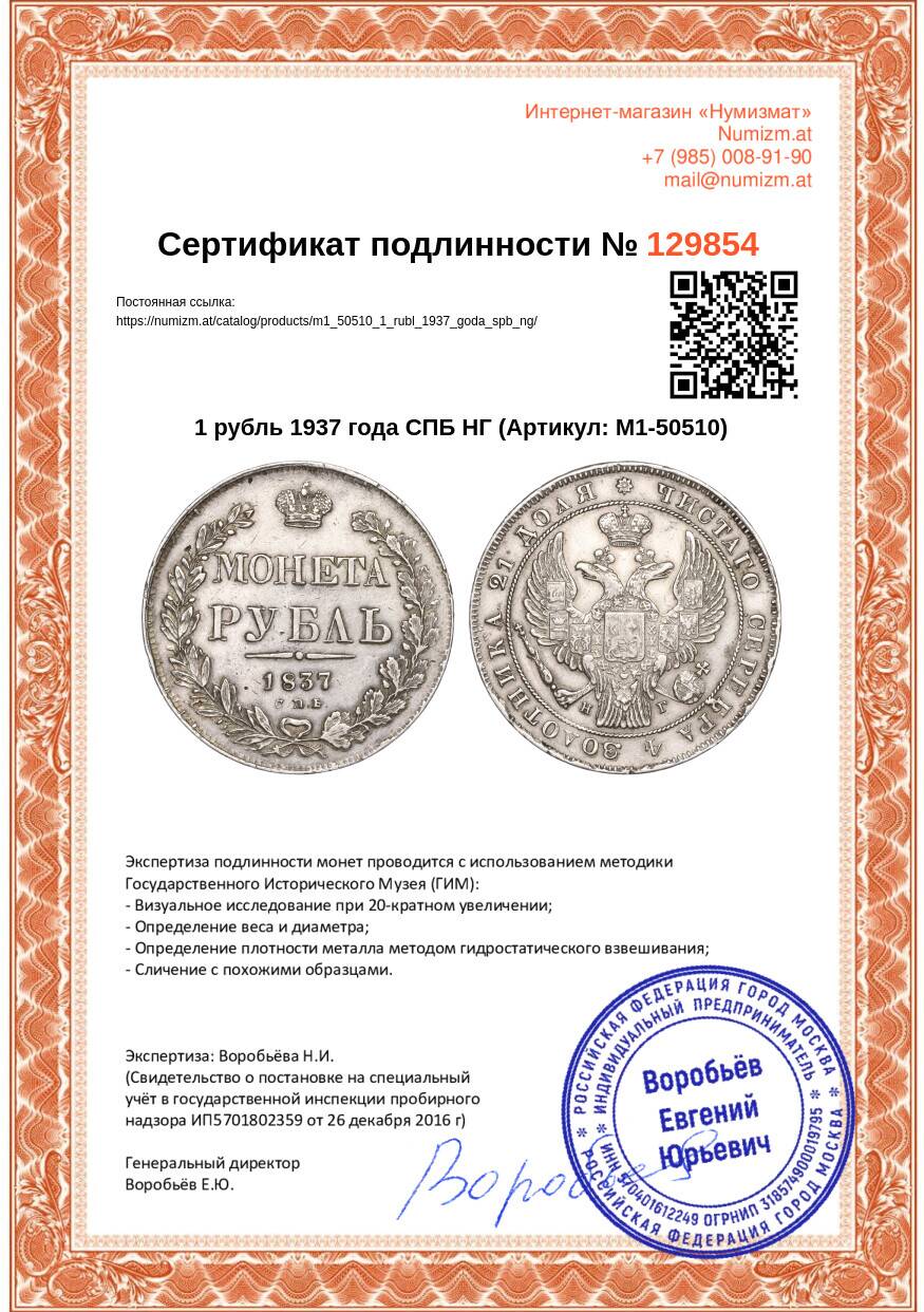 20.01.2025Интернет магазин «Нумизмат» предлагает приобрести 1 рубль 1837 года СПБ НГ.