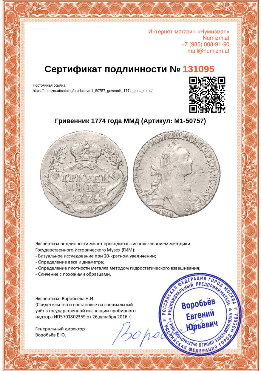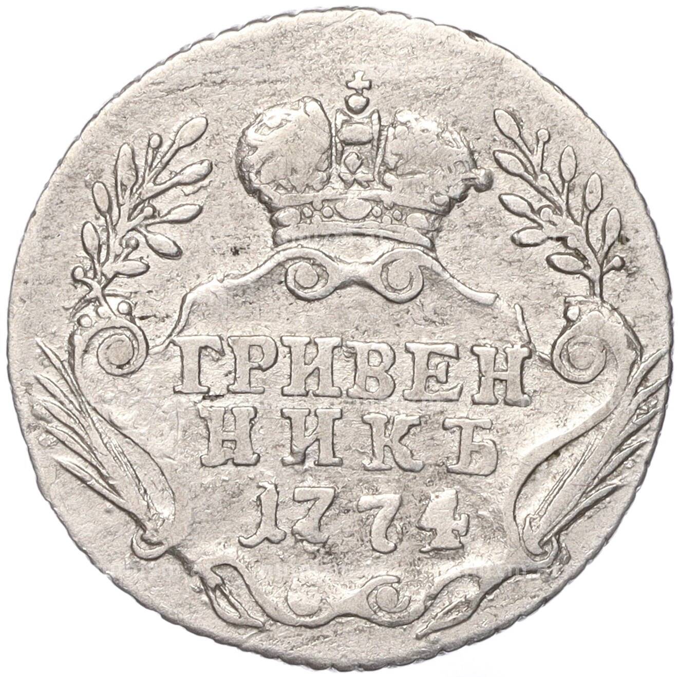 Купить Гривенник 1774 года ММД по привлекательной цене можно в нашем интернет-магазине — Вам достаточно оформить заказ на сайте. Все монеты, представленные в каталоге, находятся в наличии на нашем складе.