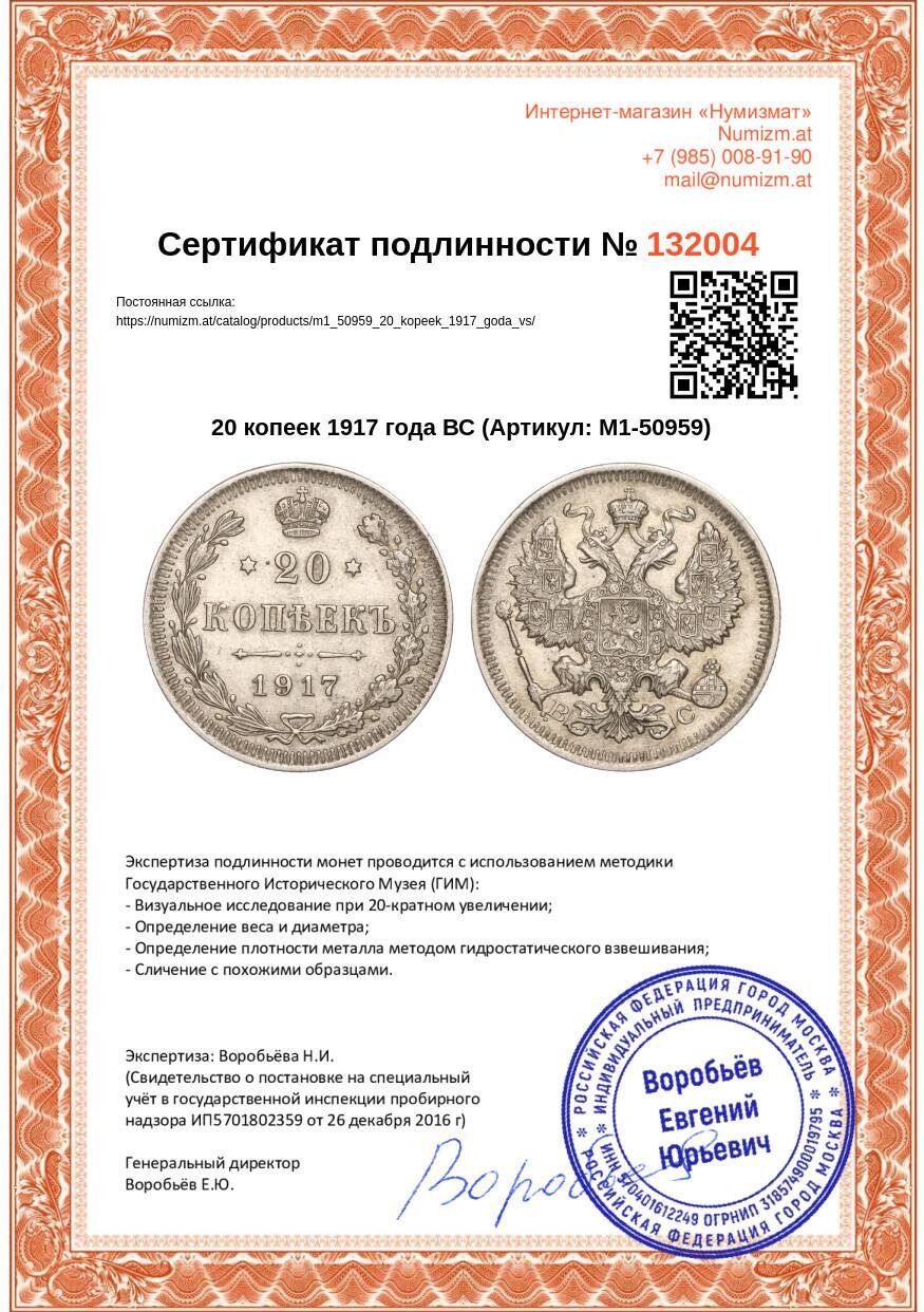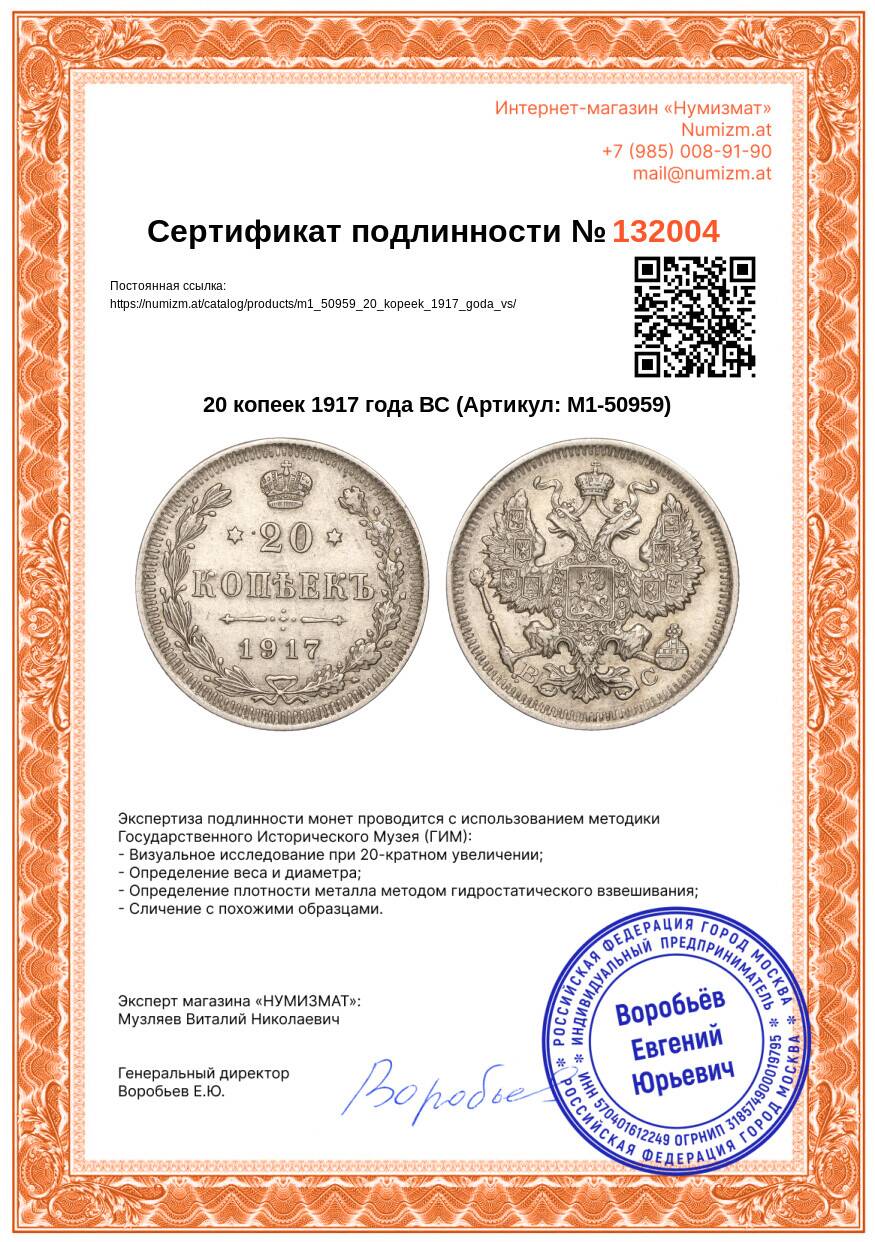 Купить 20 копеек 1917 года ВС по привлекательной цене можно в нашем интернет-магазине — Вам достаточно оформить заказ на сайте. Все монеты, представленные в каталоге, находятся в наличии на нашем складе.