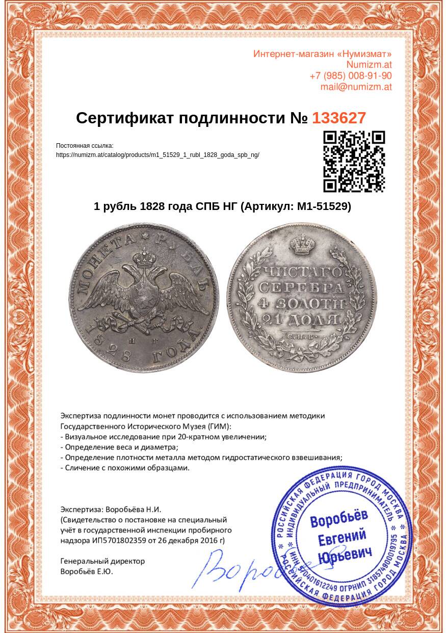 Купить 1 рубль 1828 года СПБ НГ по привлекательной цене можно в нашем интернет-магазине — Вам достаточно оформить заказ на сайте. Все монеты, представленные в каталоге, находятся в наличии на нашем складе.