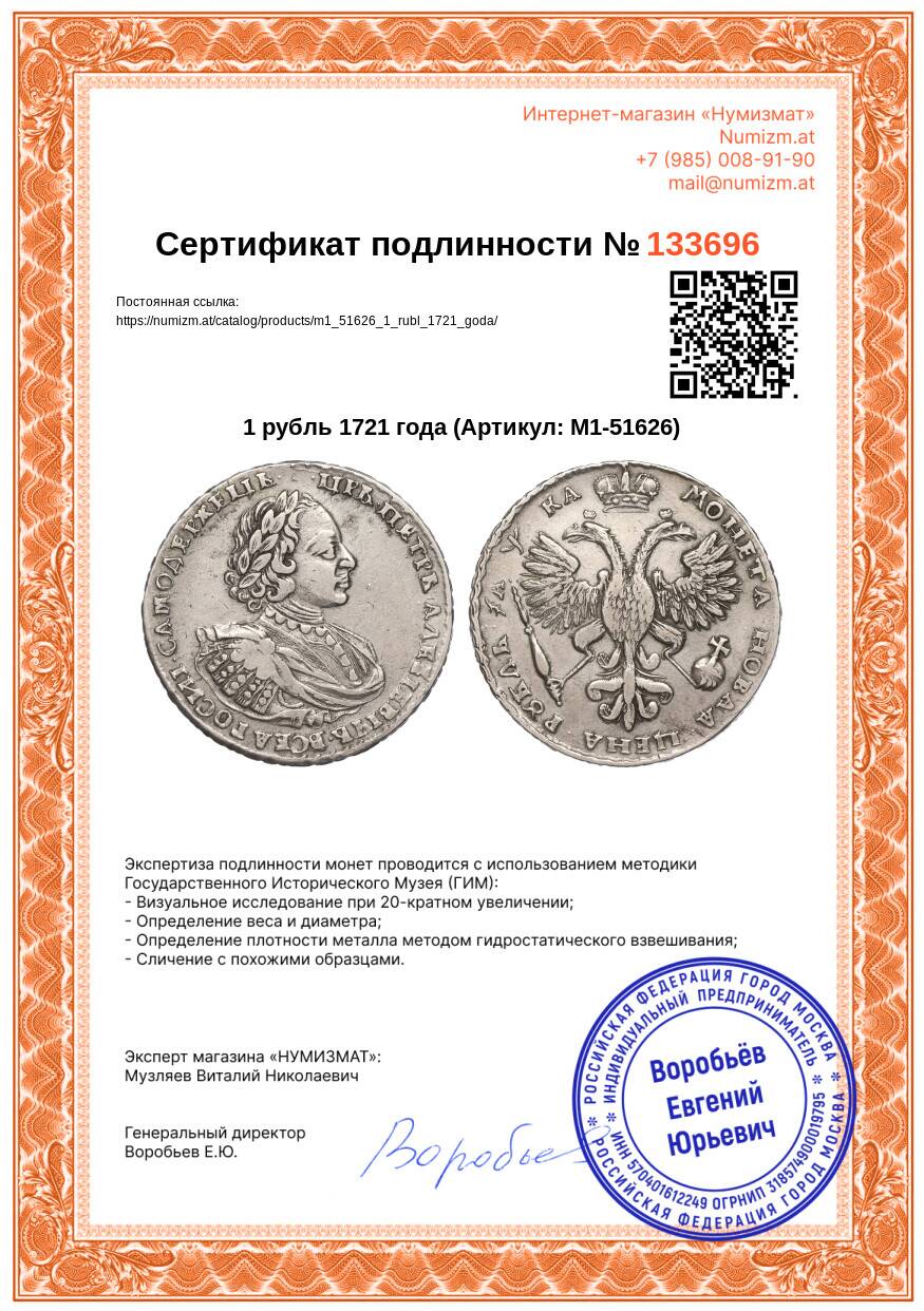Купить 1 рубль 1721 года по привлекательной цене можно в нашем интернет-магазине — Вам достаточно оформить заказ на сайте. Все монеты, представленные в каталоге, находятся в наличии на нашем складе.