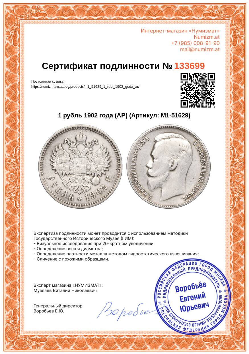 Купить 1 рубль 1902 года (АР) по привлекательной цене можно в нашем интернет-магазине — Вам достаточно оформить заказ на сайте. Все монеты, представленные в каталоге, находятся в наличии на нашем складе.