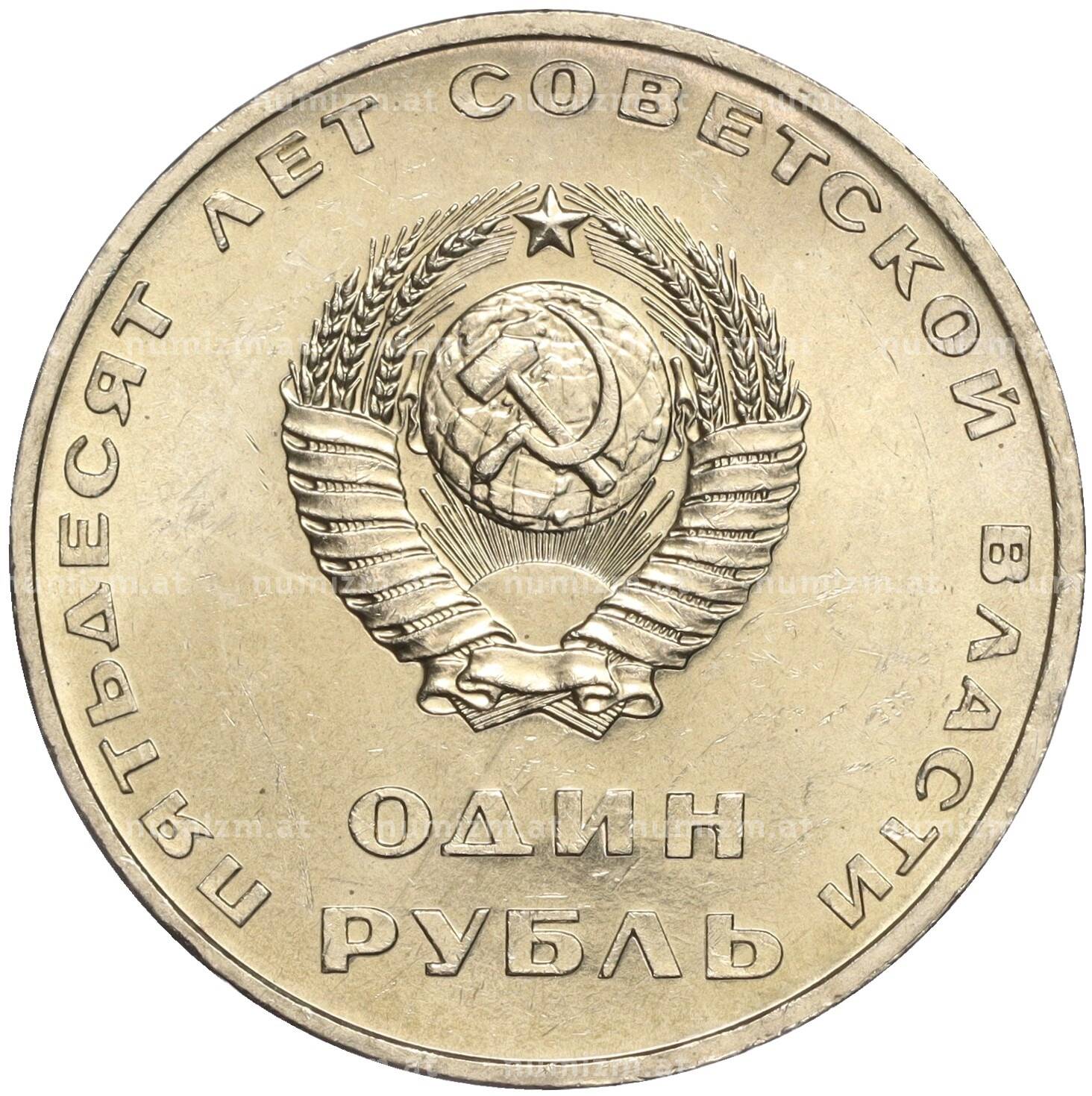 Интернет магазин «Нумизмат» предлагает приобрести 1 рубль 1967 года «50 лет Советской власти».
