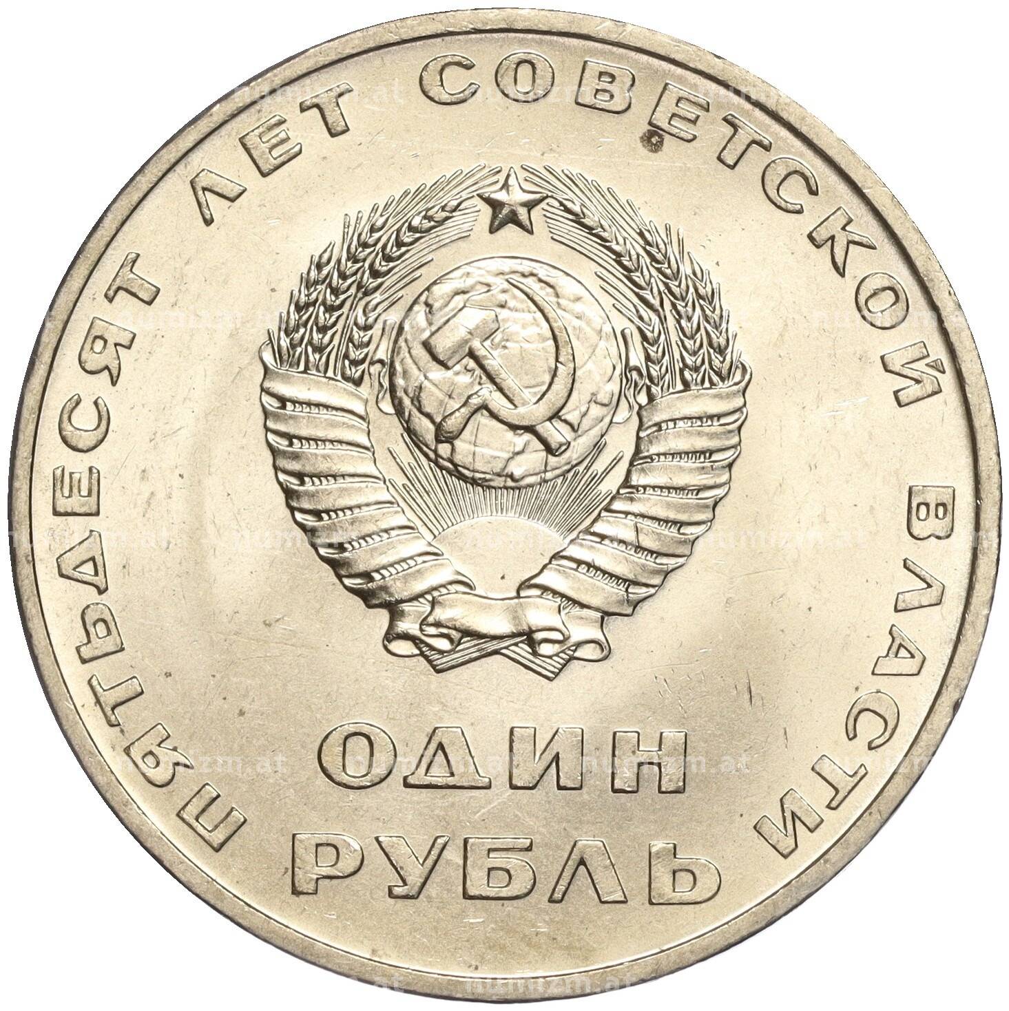 Монета 1 рубль 1967 года «50 лет Советской власти» (Артикул: M1-51831): подробные характеристики, качественные фотографии в высоком разрешении, низкая цена.