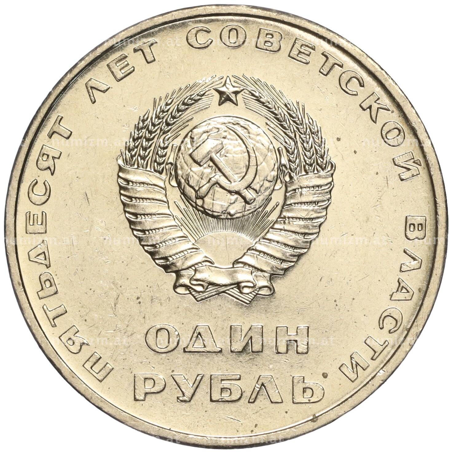 Монета 1 рубль 1967 года «50 лет Советской власти» (Артикул: M1-51849): подробные характеристики, качественные фотографии в высоком разрешении, низкая цена.