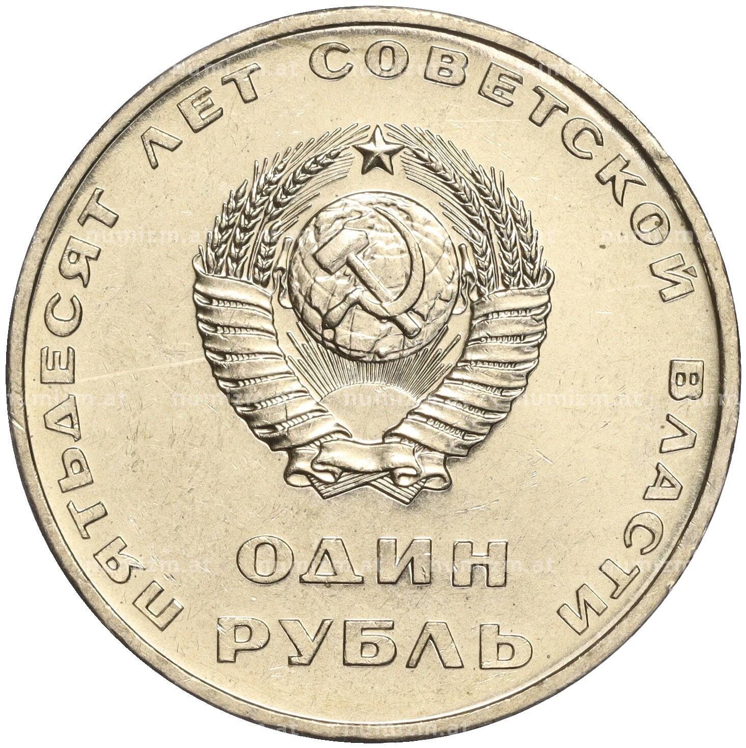 Монета 1 рубль 1967 года «50 лет Советской власти» (Артикул: M1-51897): подробные характеристики, качественные фотографии в высоком разрешении, низкая цена.