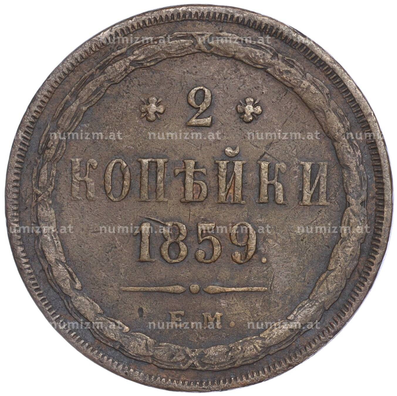 Купить 2 копейки 1859 года ЕМ по привлекательной цене можно в нашем интернет-магазине — Вам достаточно оформить заказ на сайте. Все монеты, представленные в каталоге, находятся в наличии на нашем складе.