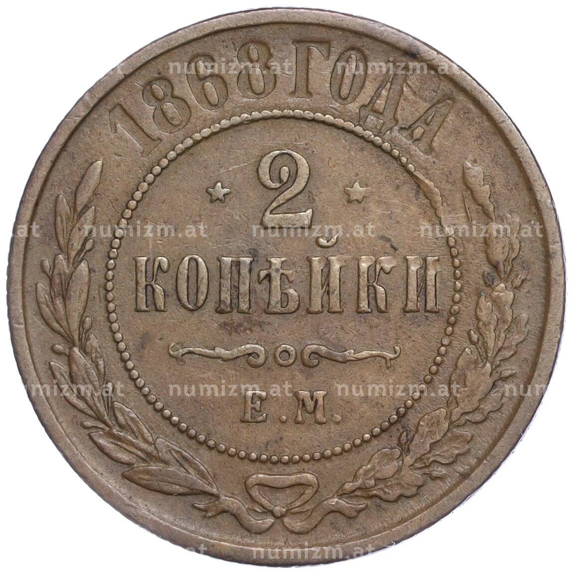 Купить 2 копейки 1868 года ЕМ по привлекательной цене можно в нашем интернет-магазине — Вам достаточно оформить заказ на сайте. Все монеты, представленные в каталоге, находятся в наличии на нашем складе.