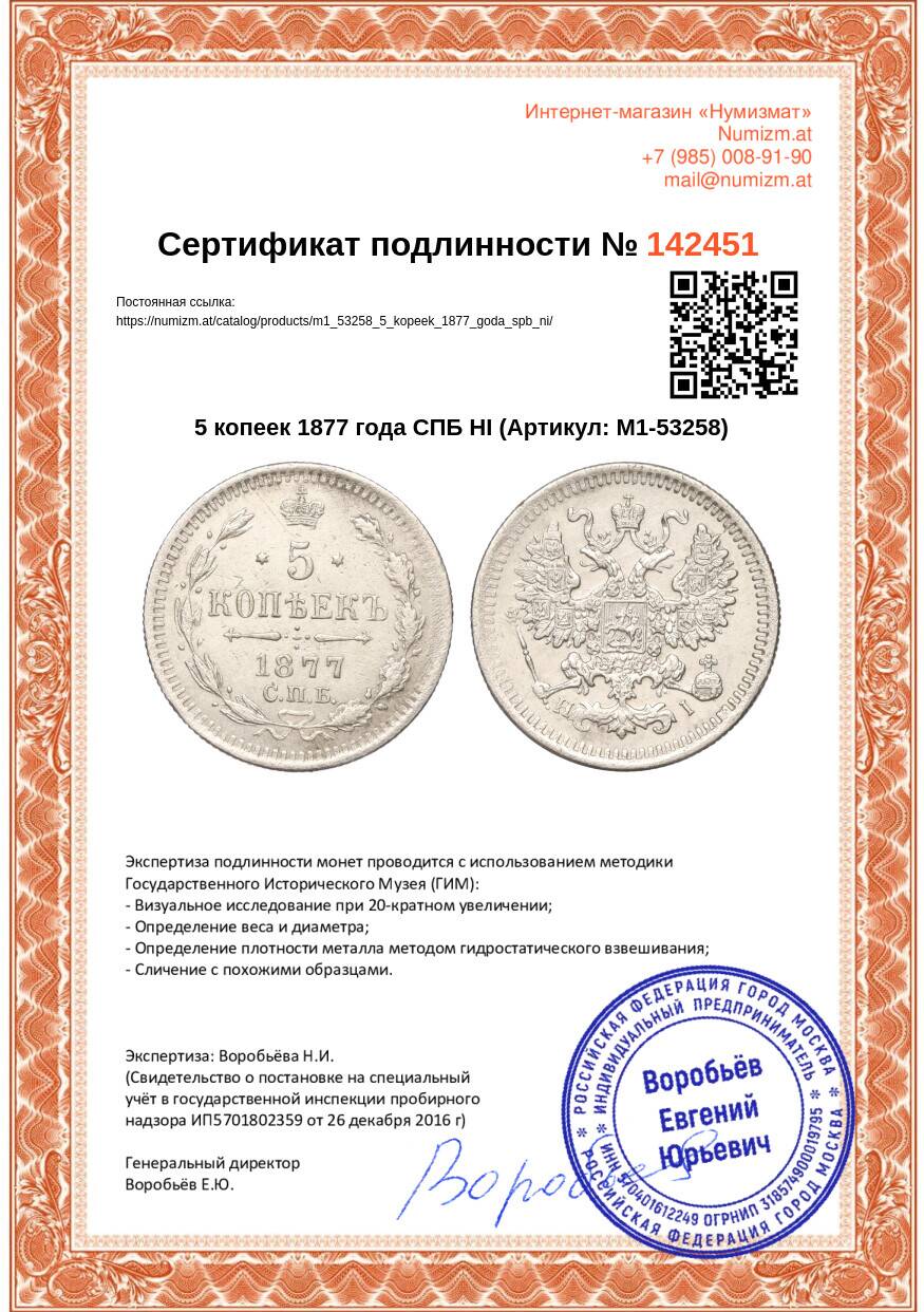Купить 5 копеек 1877 года СПБ НI по привлекательной цене можно в нашем интернет-магазине — Вам достаточно оформить заказ на сайте. Все монеты, представленные в каталоге, находятся в наличии на нашем складе.