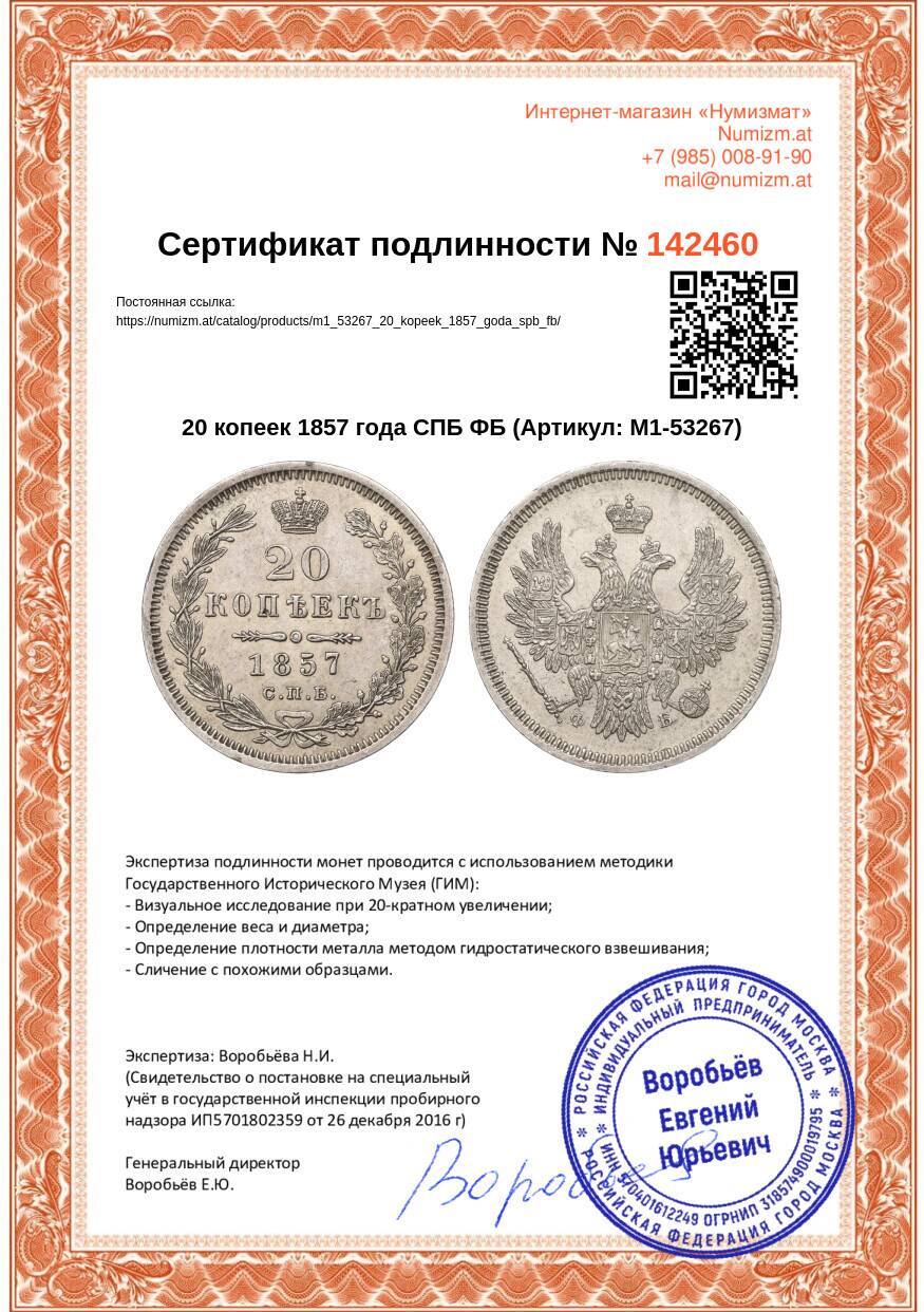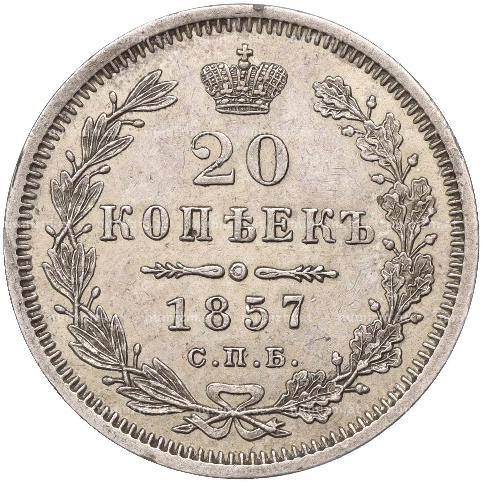 Купить 20 копеек 1857 года СПБ ФБ по привлекательной цене можно в нашем интернет-магазине — Вам достаточно оформить заказ на сайте. Все монеты, представленные в каталоге, находятся в наличии на нашем складе.