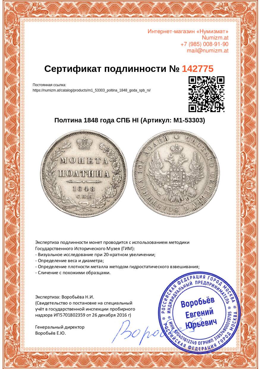 Купить Полтина 1848 года СПБ НI по привлекательной цене можно в нашем интернет-магазине — Вам достаточно оформить заказ на сайте. Все монеты, представленные в каталоге, находятся в наличии на нашем складе.