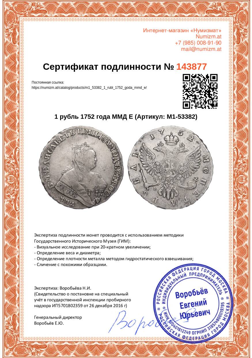 Купить 1 рубль 1752 года ММД Е по привлекательной цене можно в нашем интернет-магазине — Вам достаточно оформить заказ на сайте. Все монеты, представленные в каталоге, находятся в наличии на нашем складе.