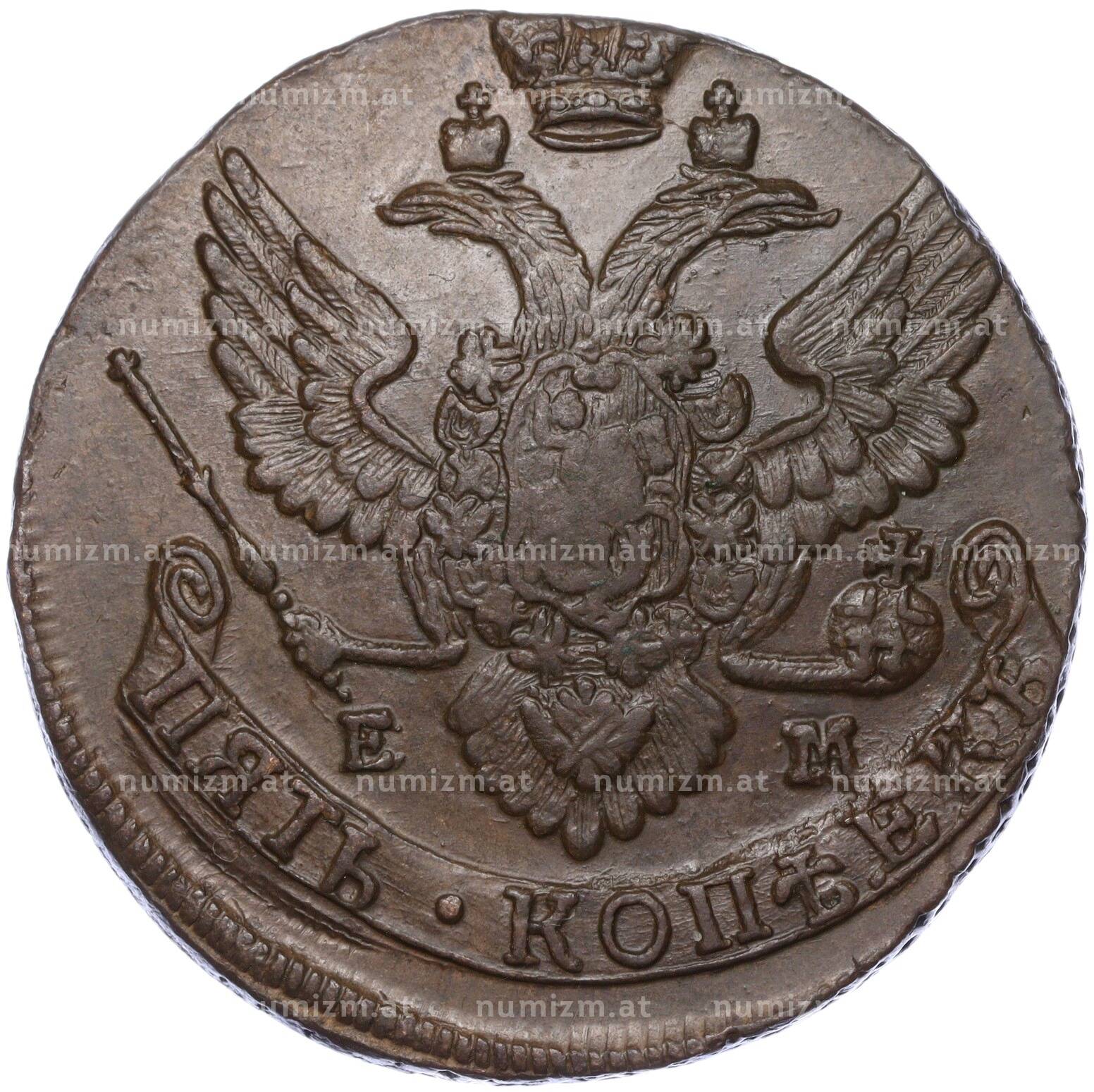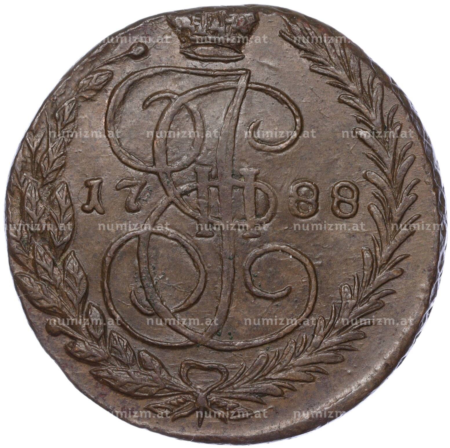 20.01.2025Интернет магазин «Нумизмат» предлагает приобрести 5 копеек 1788 года ЕМ.