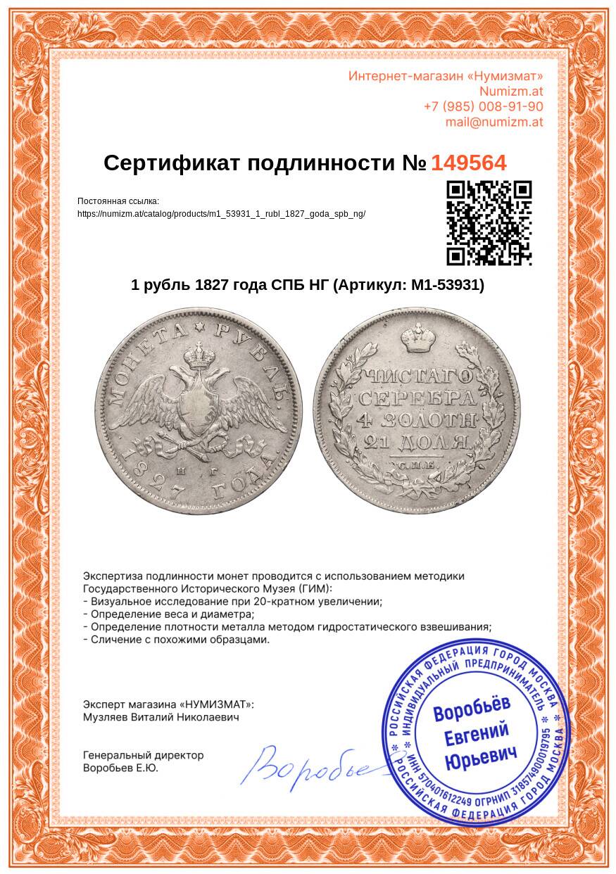 Купить 1 рубль 1827 года СПБ НГ по привлекательной цене можно в нашем интернет-магазине — Вам достаточно оформить заказ на сайте. Все монеты, представленные в каталоге, находятся в наличии на нашем складе.