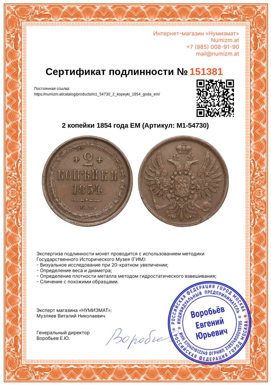 Купить 2 копейки 1854 года ЕМ по привлекательной цене можно в нашем интернет-магазине — Вам достаточно оформить заказ на сайте. Все монеты, представленные в каталоге, находятся в наличии на нашем складе.