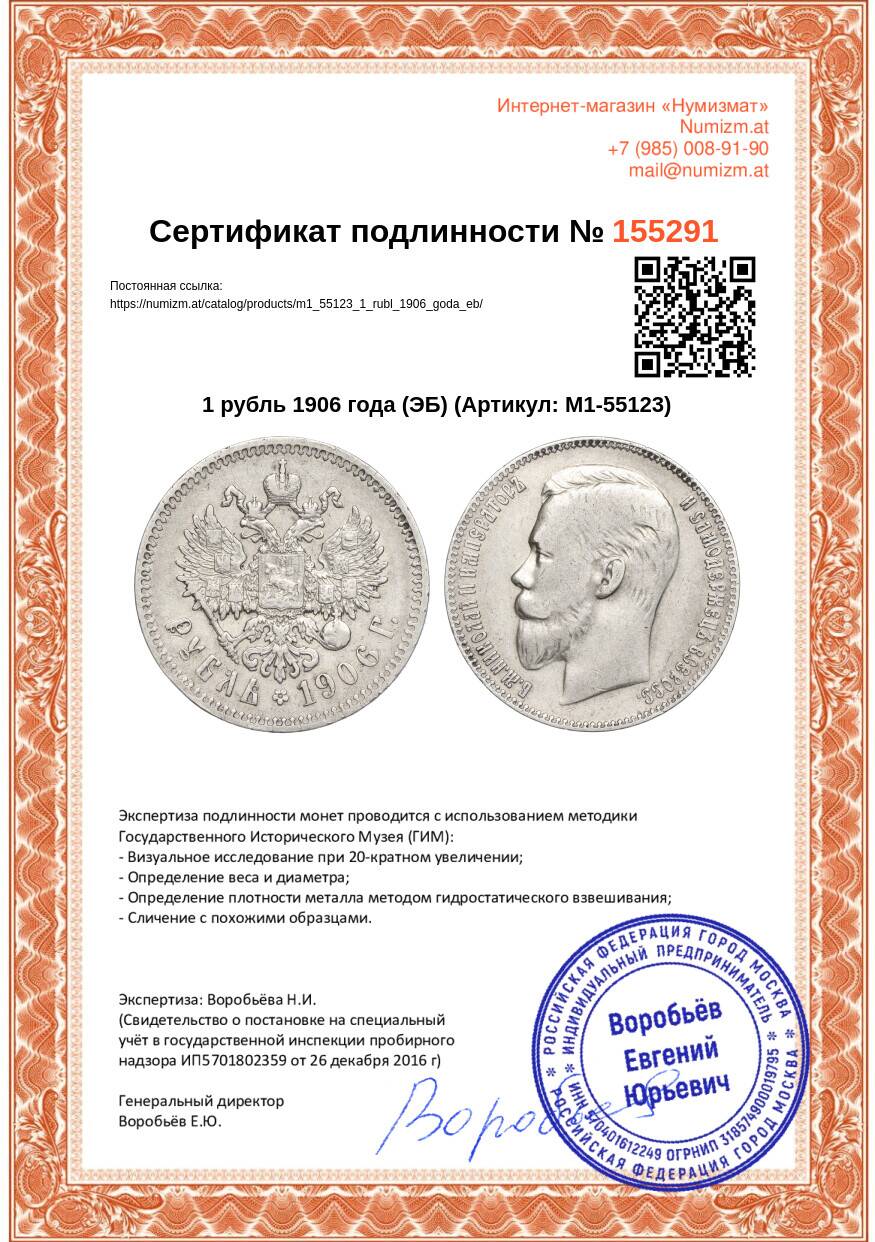 Купить 1 рубль 1906 года (ЭБ) по привлекательной цене можно в нашем интернет-магазине — Вам достаточно оформить заказ на сайте. Все монеты, представленные в каталоге, находятся в наличии на нашем складе.