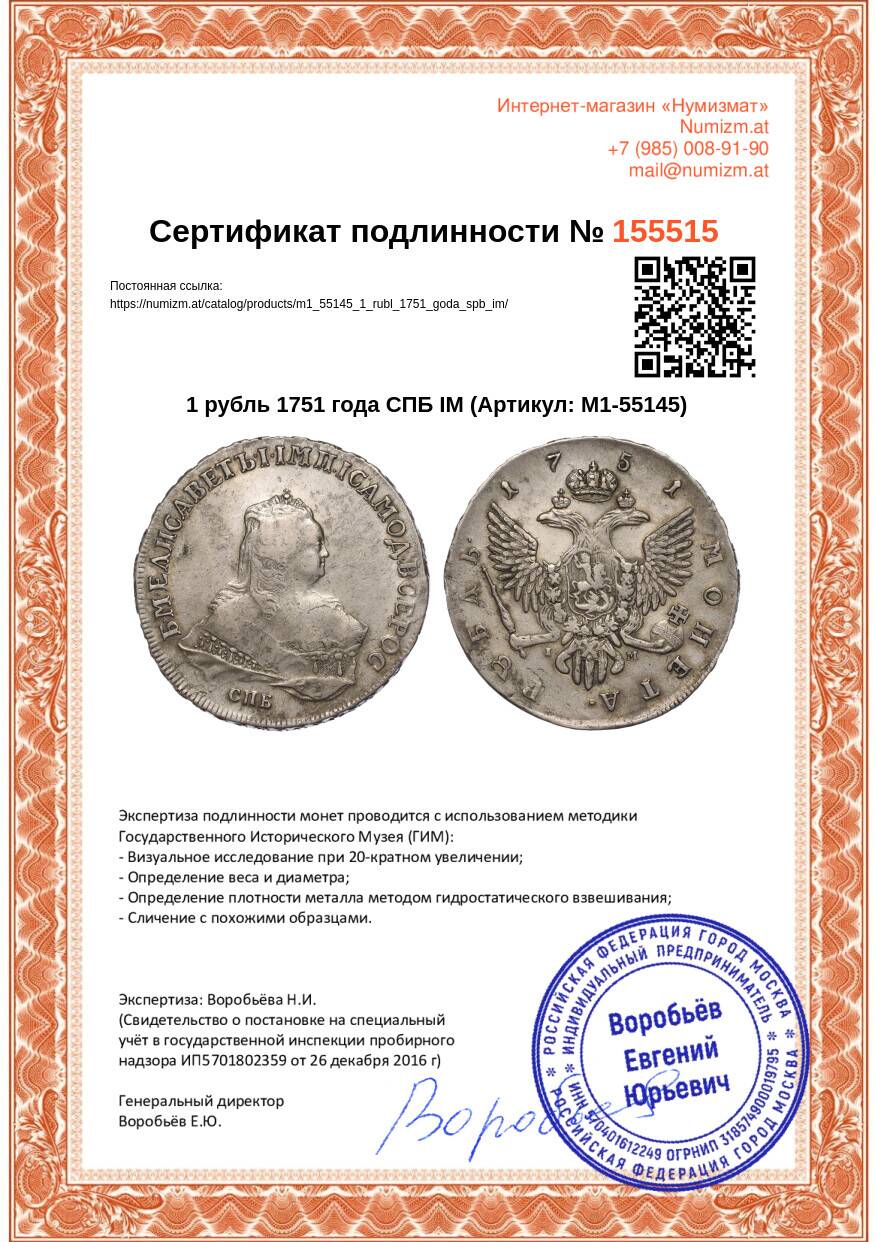 Купить 1 рубль 1751 года СПБ IМ по привлекательной цене можно в нашем интернет-магазине — Вам достаточно оформить заказ на сайте. Все монеты, представленные в каталоге, находятся в наличии на нашем складе.