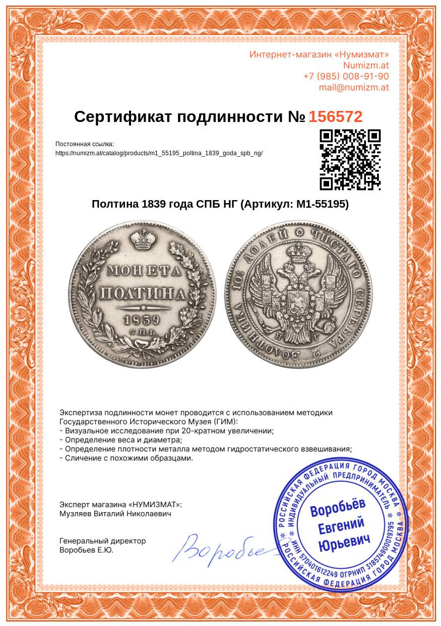 Купить Полтина 1839 года СПБ НГ по привлекательной цене можно в нашем интернет-магазине — Вам достаточно оформить заказ на сайте. Все монеты, представленные в каталоге, находятся в наличии на нашем складе.