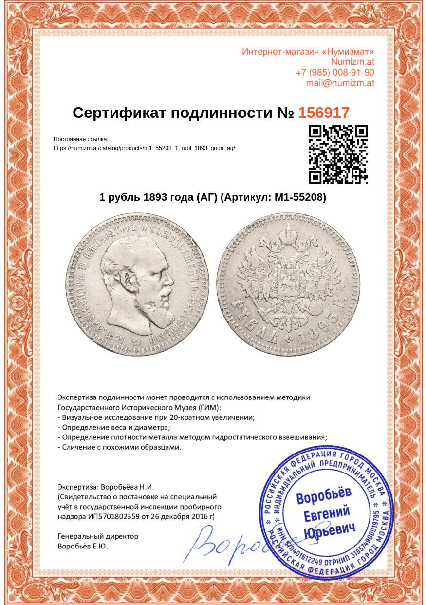 Купить 1 рубль 1893 года (АГ) по привлекательной цене можно в нашем интернет-магазине — Вам достаточно оформить заказ на сайте. Все монеты, представленные в каталоге, находятся в наличии на нашем складе.