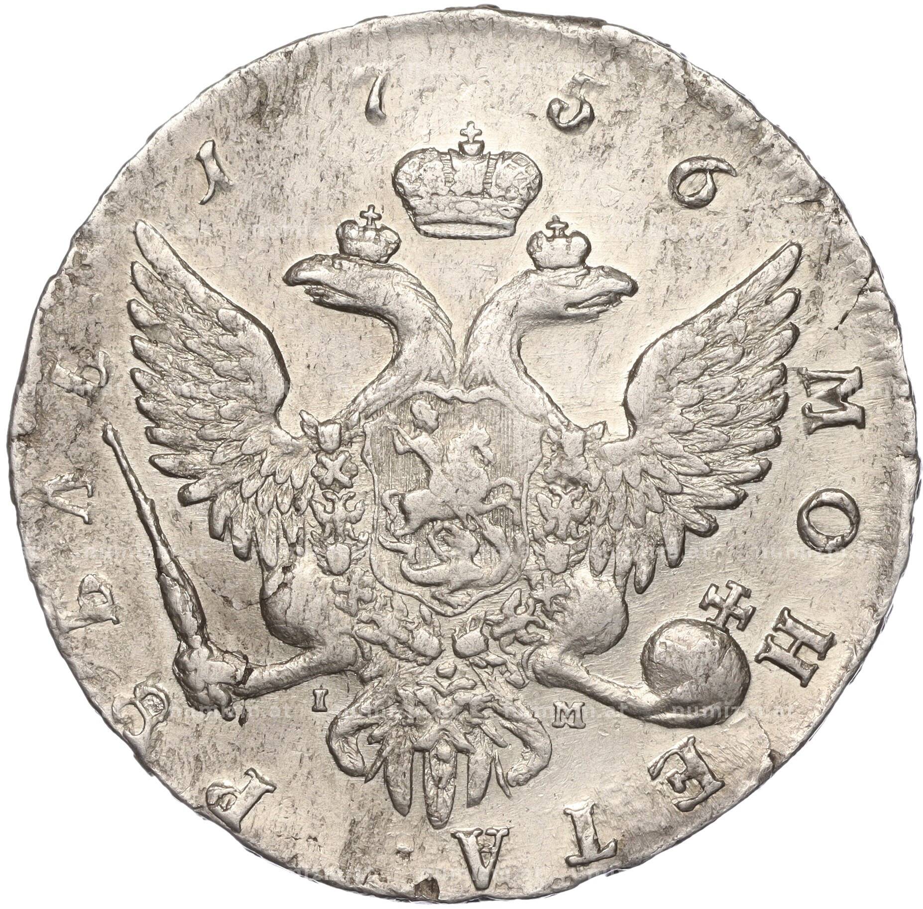 Купить 1 рубль 1756 года СПБ IМ по привлекательной цене можно в нашем интернет-магазине — Вам достаточно оформить заказ на сайте. Все монеты, представленные в каталоге, находятся в наличии на нашем складе.