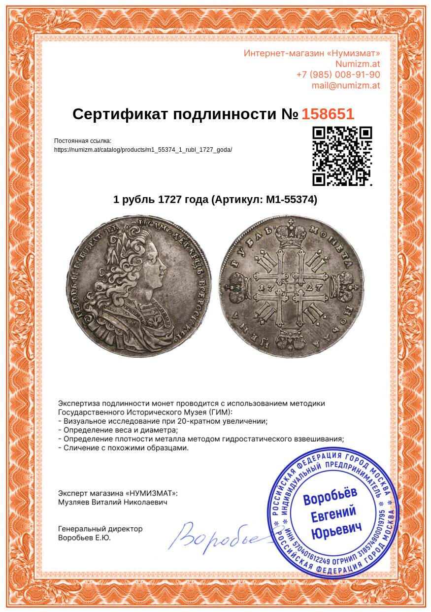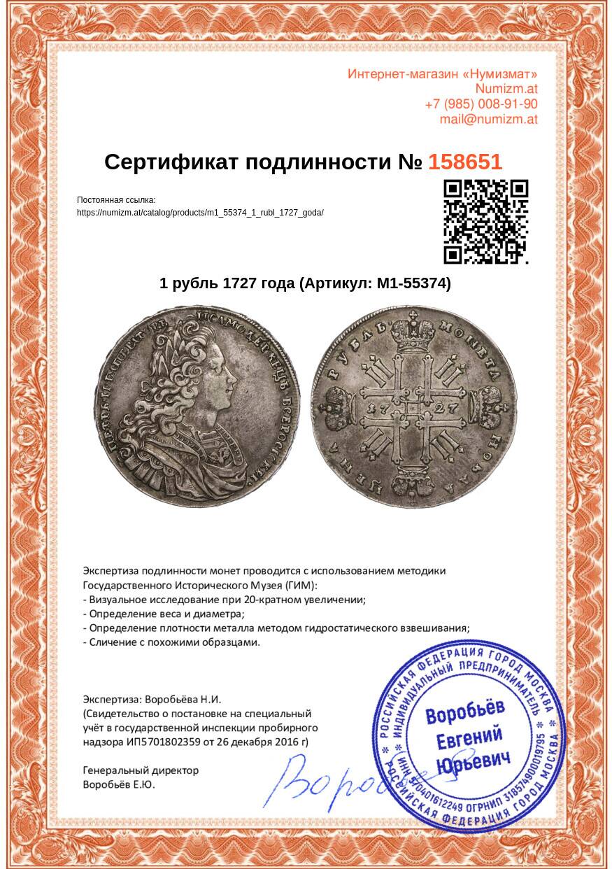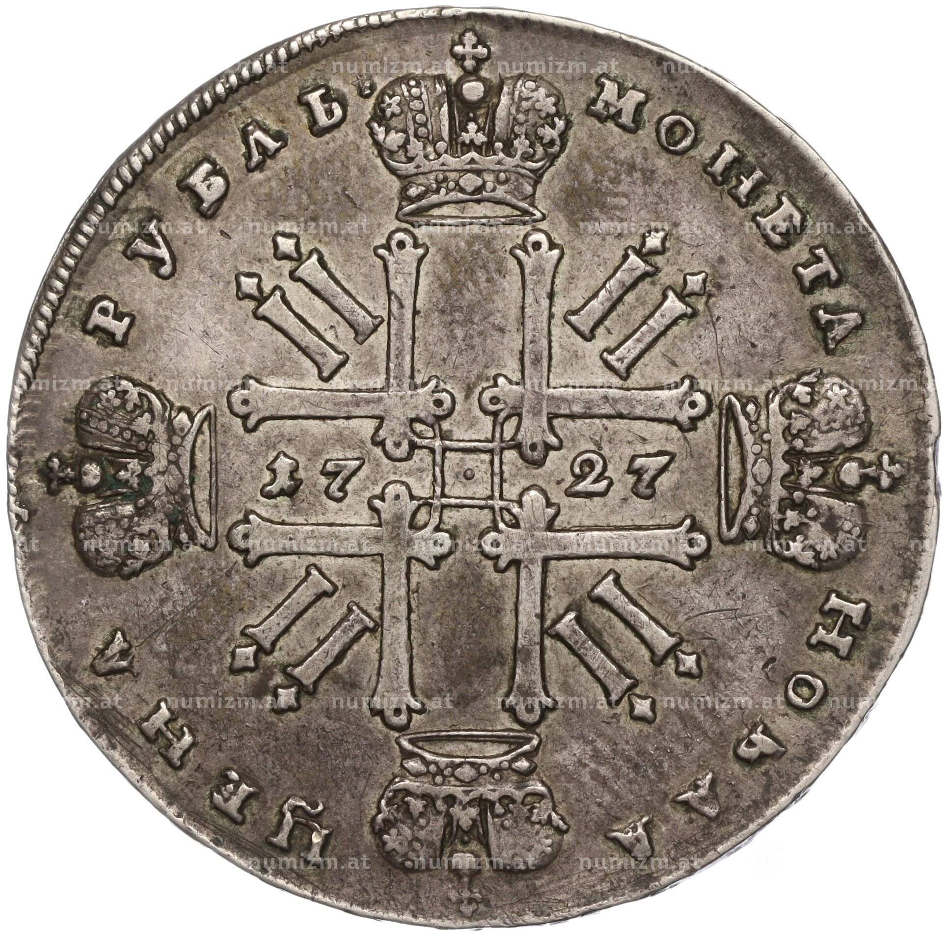Купить 1 рубль 1727 года по привлекательной цене можно в нашем интернет-магазине — Вам достаточно оформить заказ на сайте. Все монеты, представленные в каталоге, находятся в наличии на нашем складе.