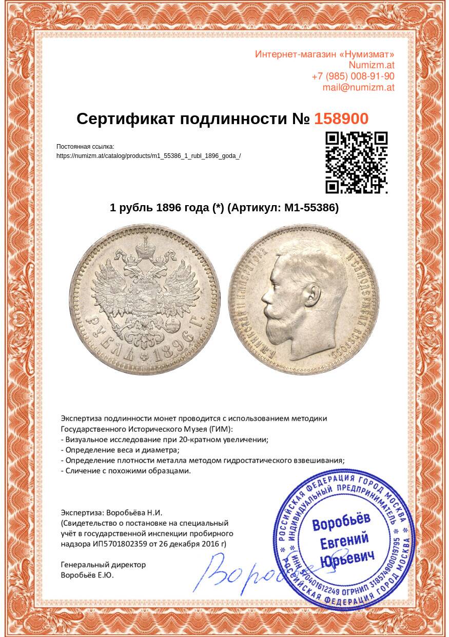 20.01.2025Интернет магазин «Нумизмат» предлагает приобрести 1 рубль 1896 года (*).