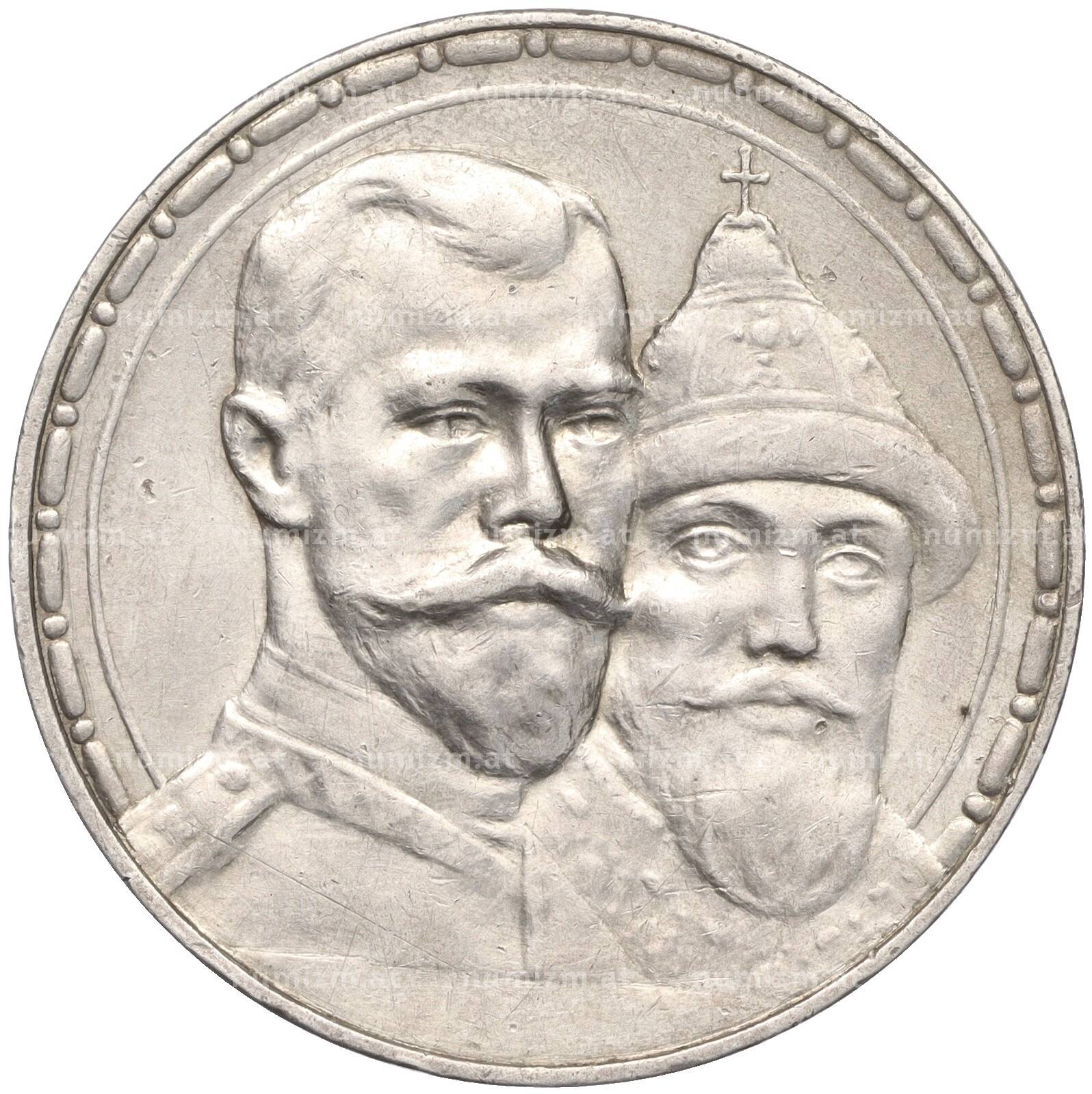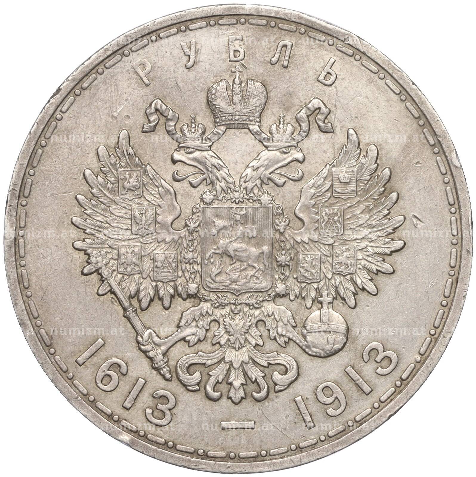 Интернет магазин «Нумизмат» предлагает приобрести 1 рубль 1913 года (ВС) «300 лет дома Романовых» (Выпуклый чекан).