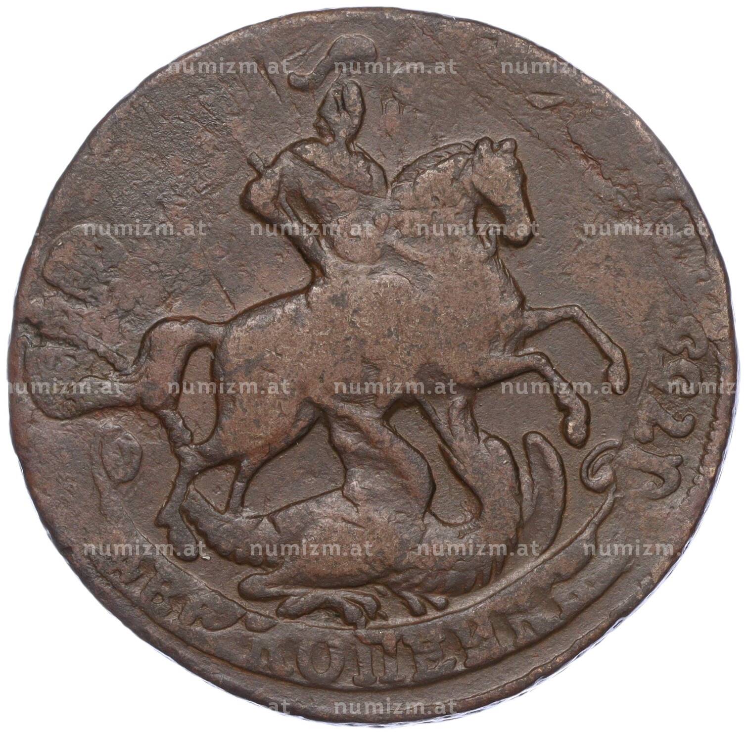 20.01.2025Интернет магазин «Нумизмат» предлагает приобрести 2 копейки 1757 года.