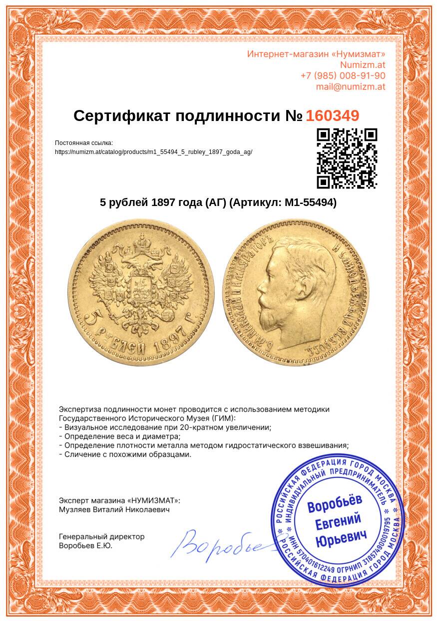 Купить 5 рублей 1897 года (АГ) по привлекательной цене можно в нашем интернет-магазине — Вам достаточно оформить заказ на сайте. Все монеты, представленные в каталоге, находятся в наличии на нашем складе.