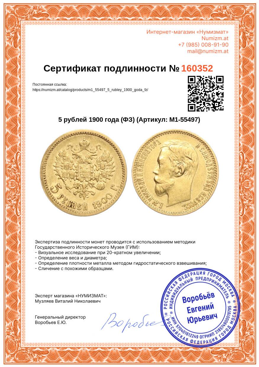 Купить 5 рублей 1900 года (ФЗ) по привлекательной цене можно в нашем интернет-магазине — Вам достаточно оформить заказ на сайте. Все монеты, представленные в каталоге, находятся в наличии на нашем складе.
